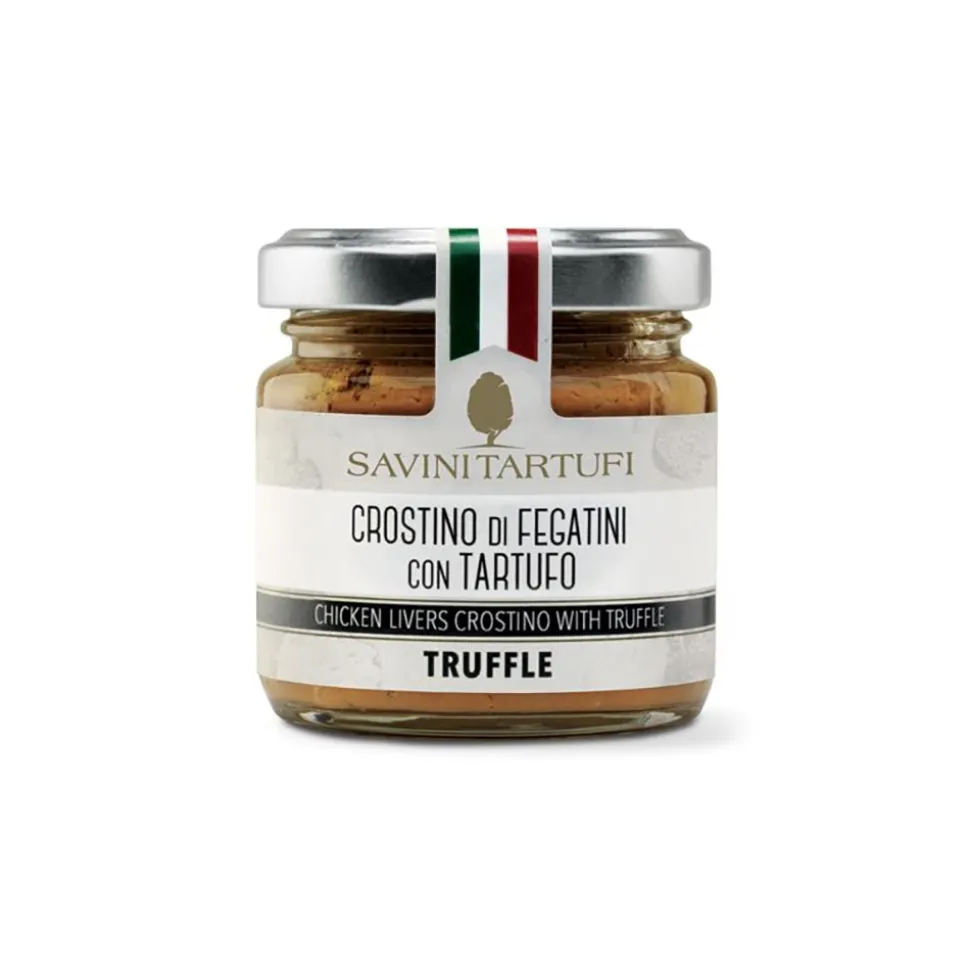 Chicken liver 62%, olive oil, skimmed milk, vegetables in variable proportions (carrots, celery, onions), cream, summer truffle (Tuber Aestivum Vitt.) 3%, shallot, wine, rice flour, salt, butter, spice, aroma, aromatic plant