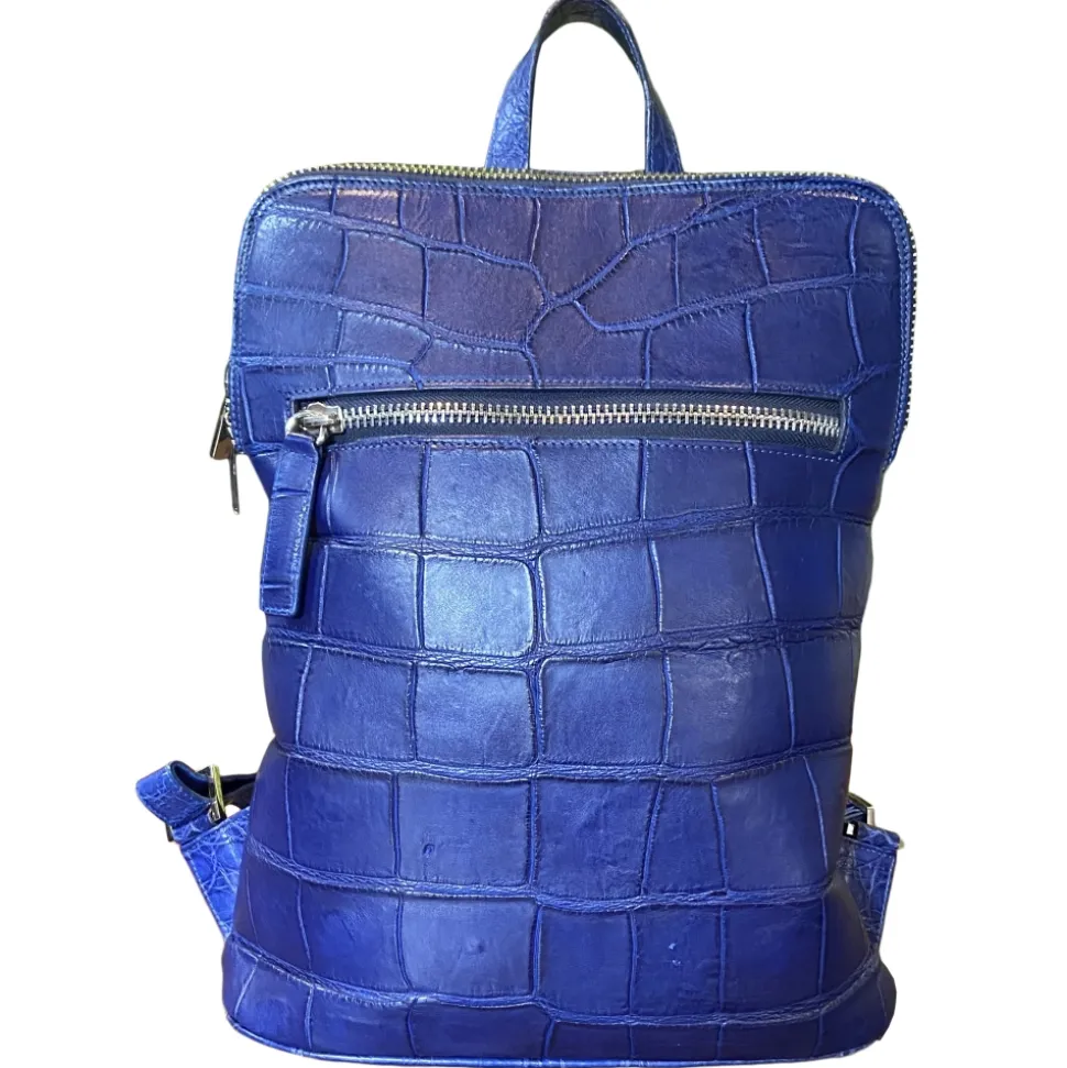 Suèi – Backpack of Crocodile Leather – Blue – Handmade in Italy – Luxury Exclusive Collection