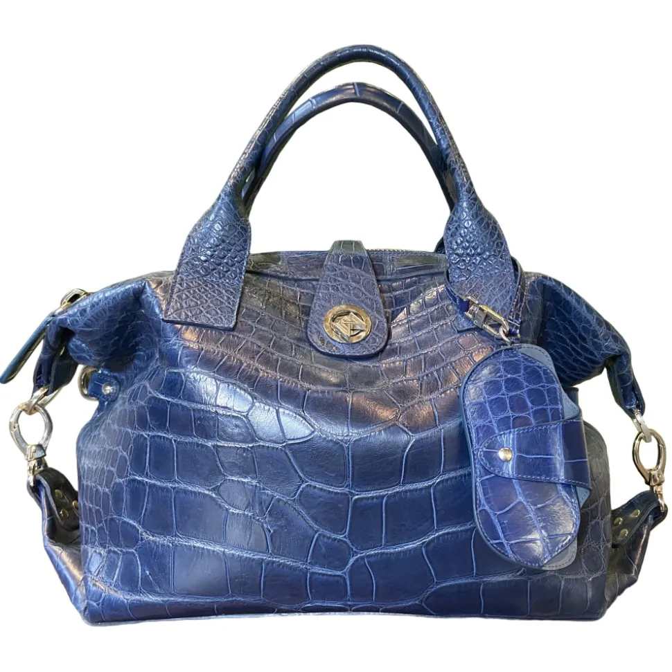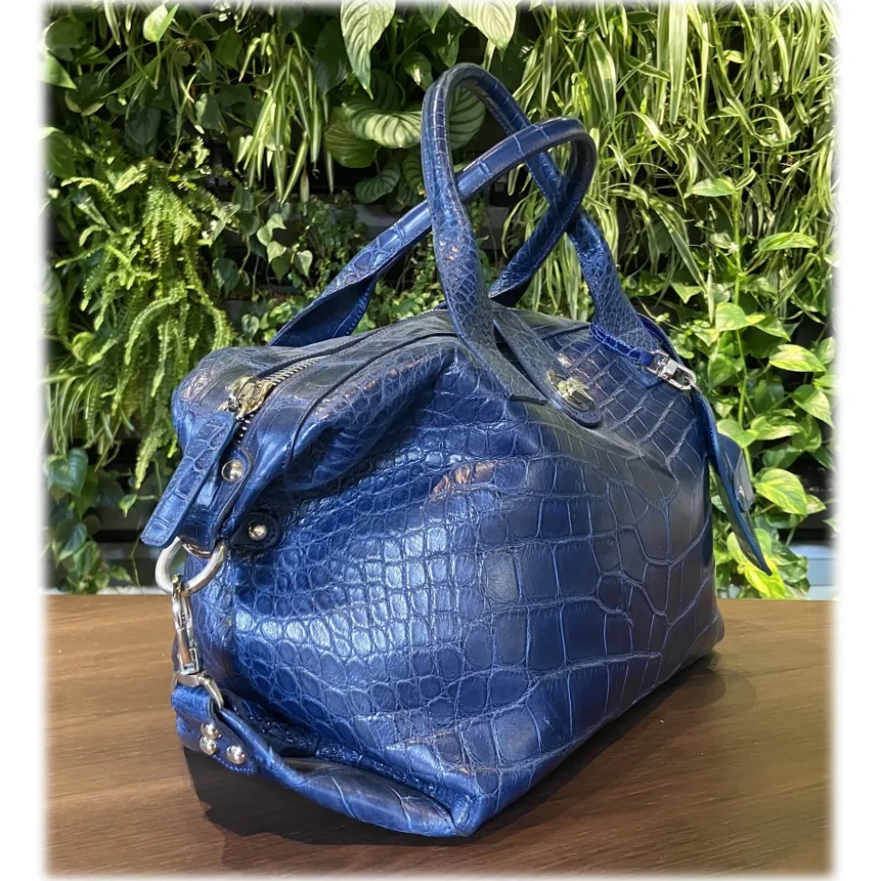 Suèi – Bag of Crocodile Leather – Blue – Handmade in Italy – Luxury Exclusive Collection