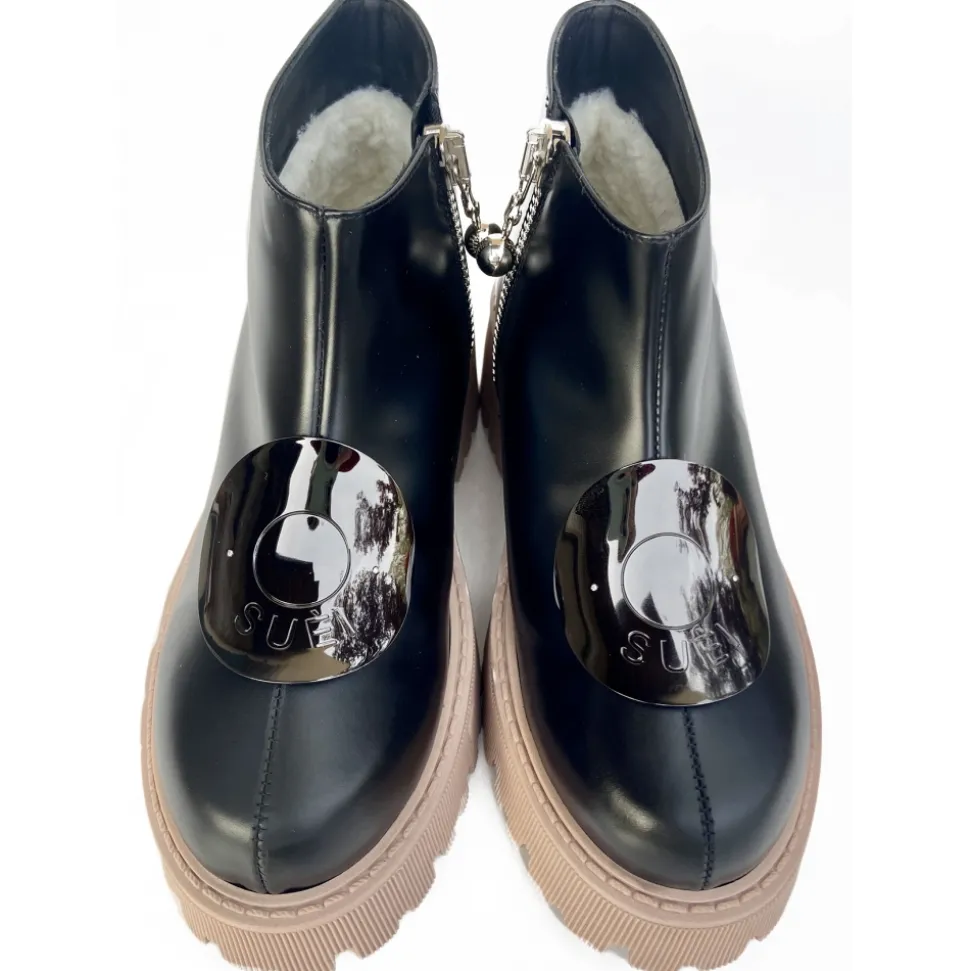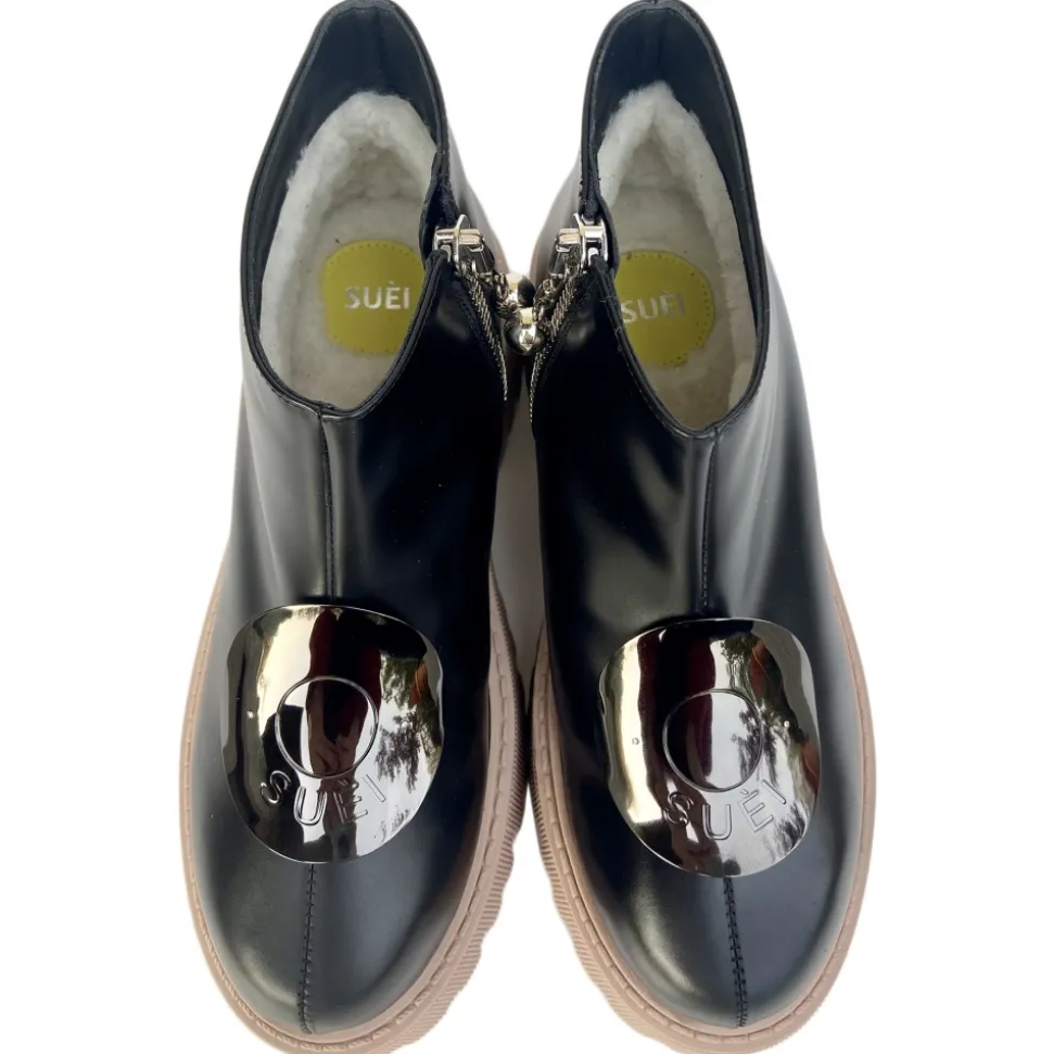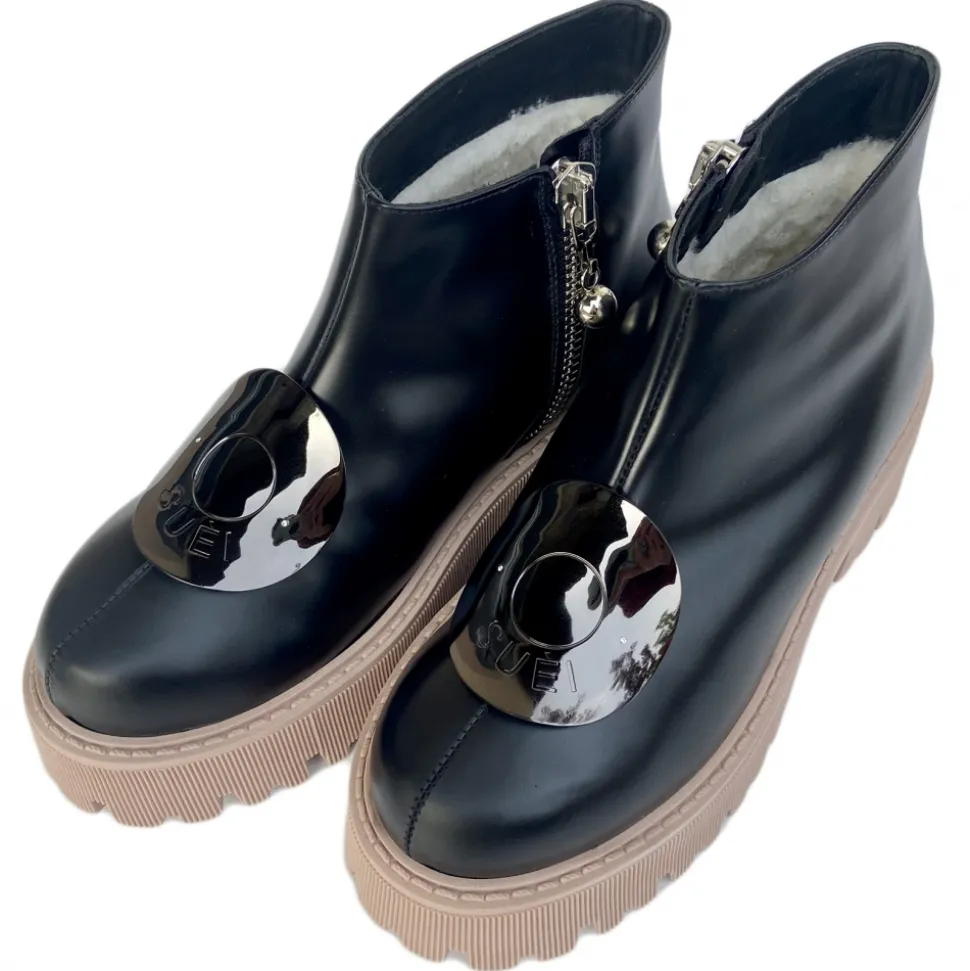 Suèi – Boots with Plate Accessories and Rose Sole – Black – Handmade in Italy – Luxury Exclusive Collection