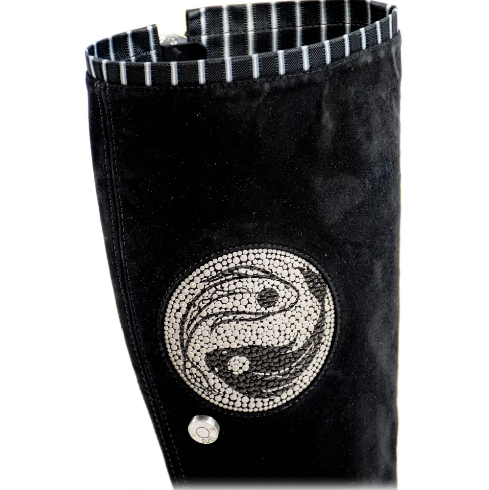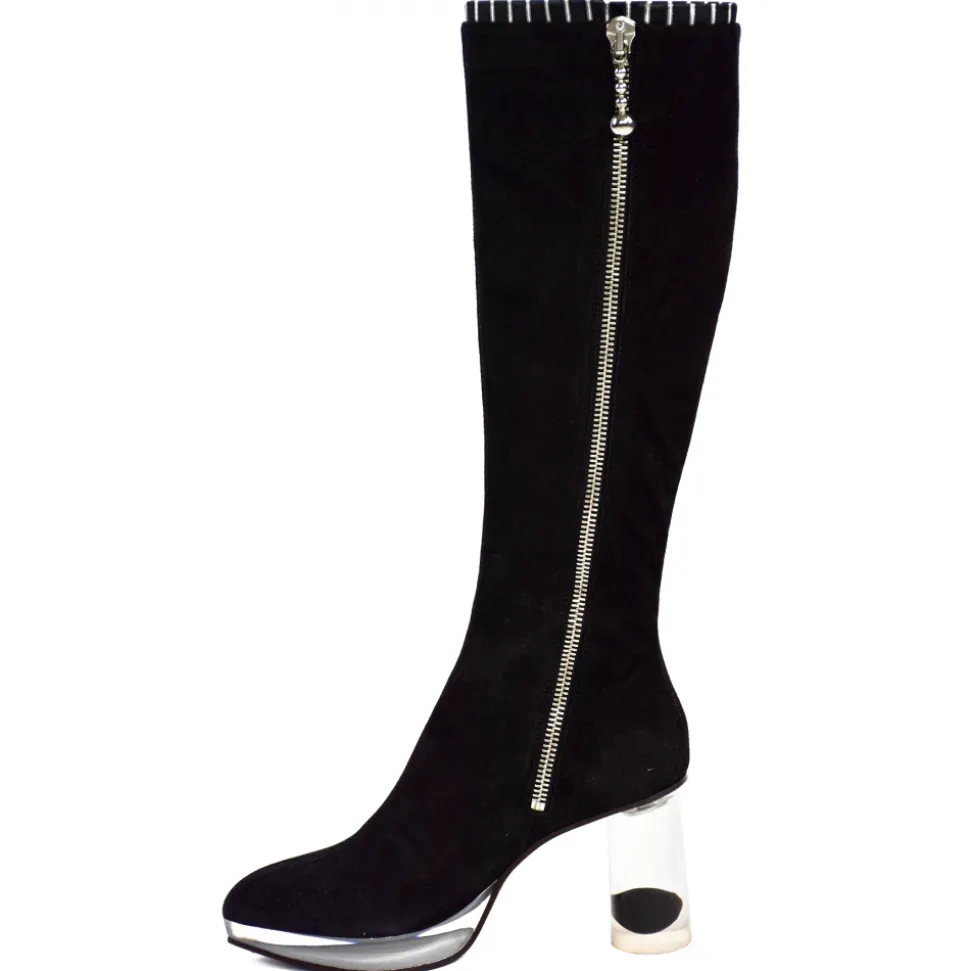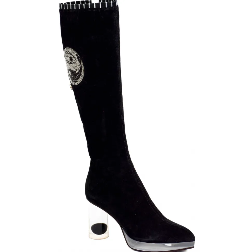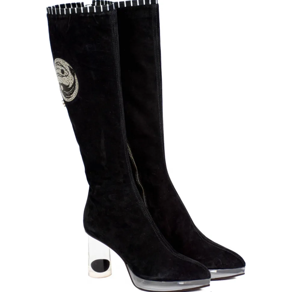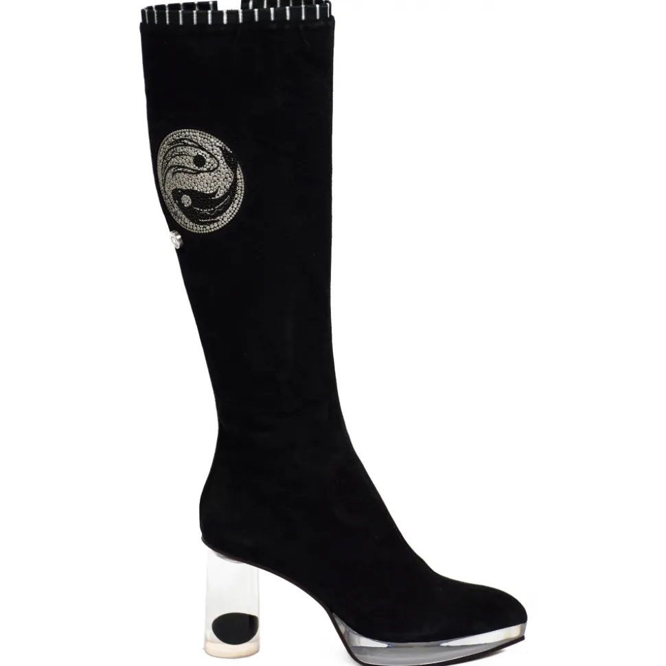 Suèi – High Black Boots With Transparent – Heels and Yin&Yang Motive – Handmade in Italy – Luxury Exclusive Collection