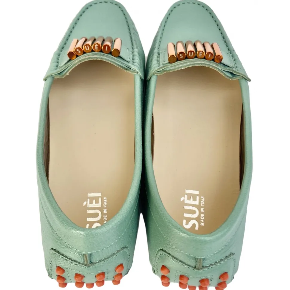 Suèi – Moccasins Colour Tiffany With Bullets – Tiffany – Handmade in Italy – Luxury Exclusive Collection