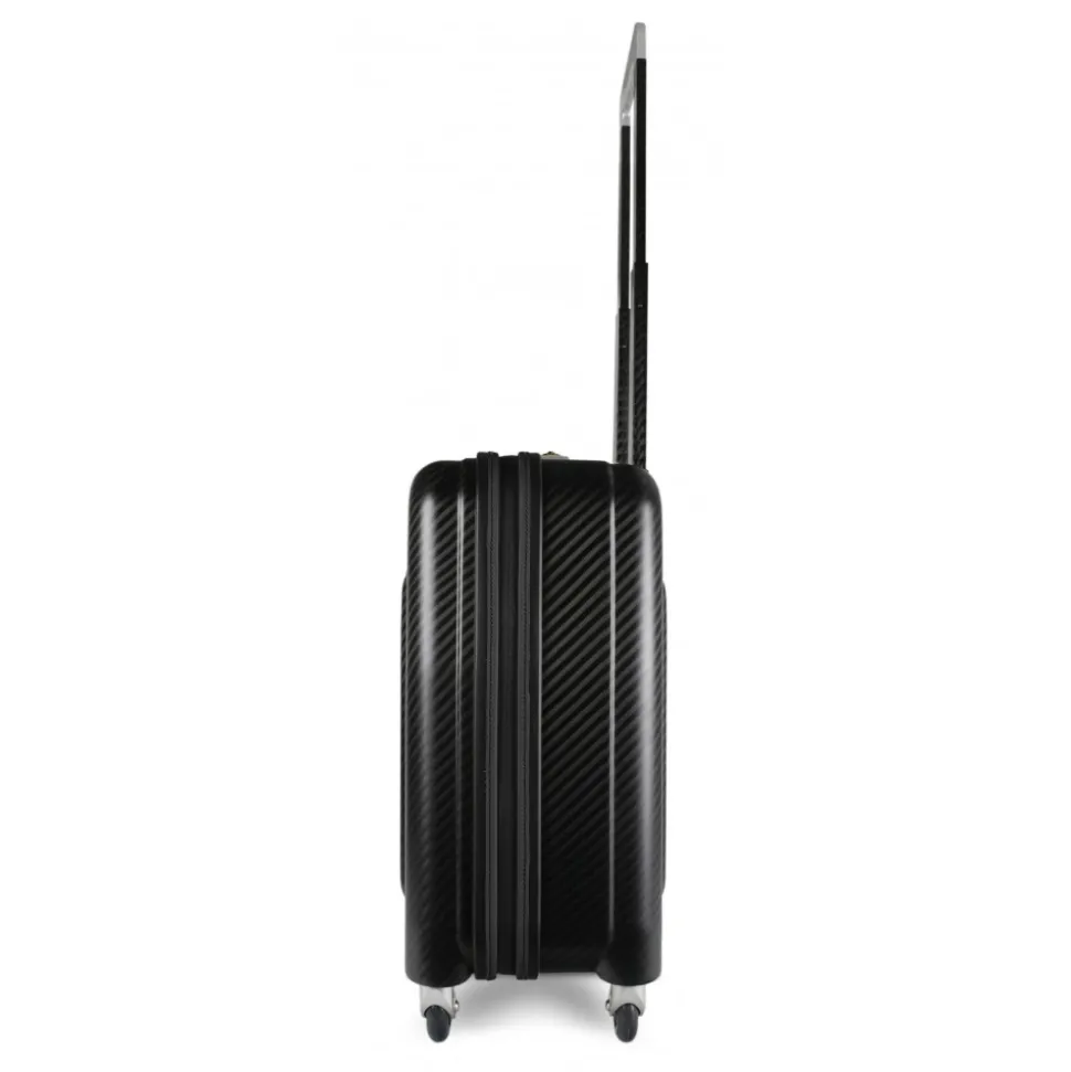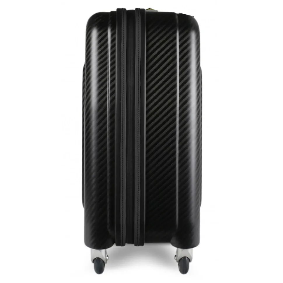 Carbon Fibre Trolley Glacies, forged in autoclave with zipper on top and aluminium details and two leather strap buckles.