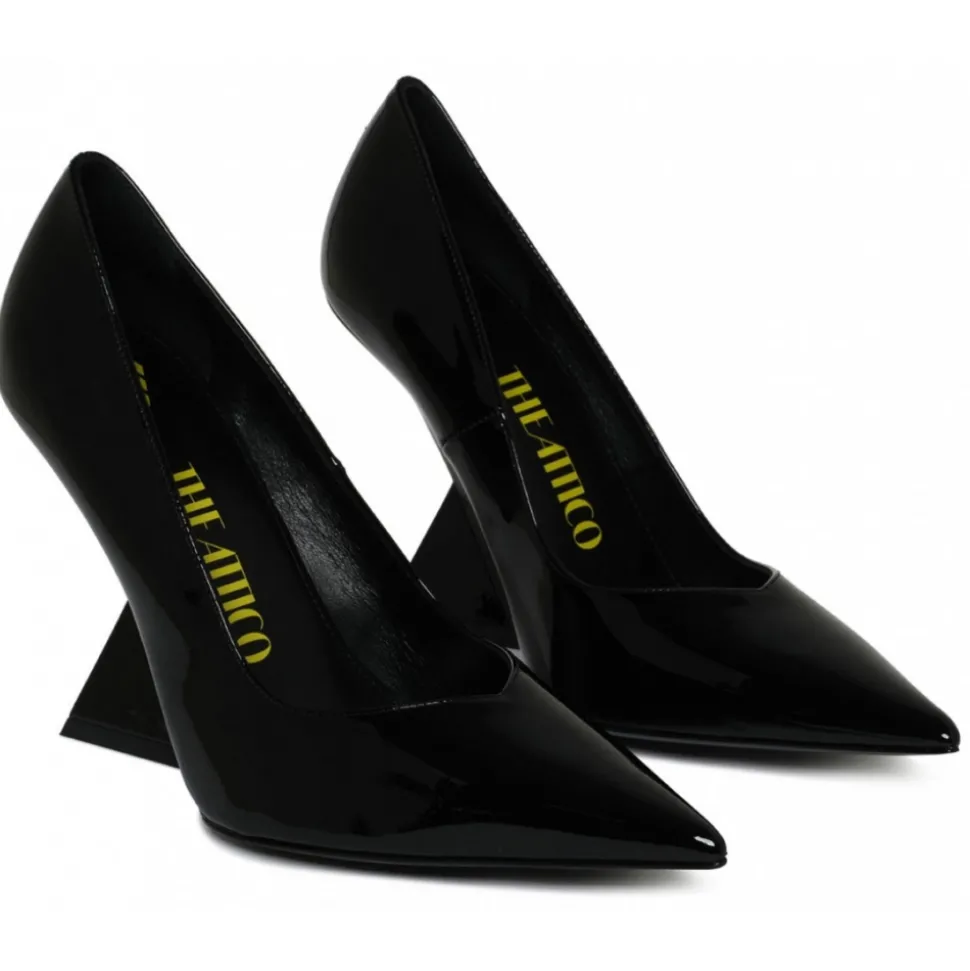 The Attico Cheope Pump. Black pump ”Cheope” in patent leather with 105mm high pyramid wedge.