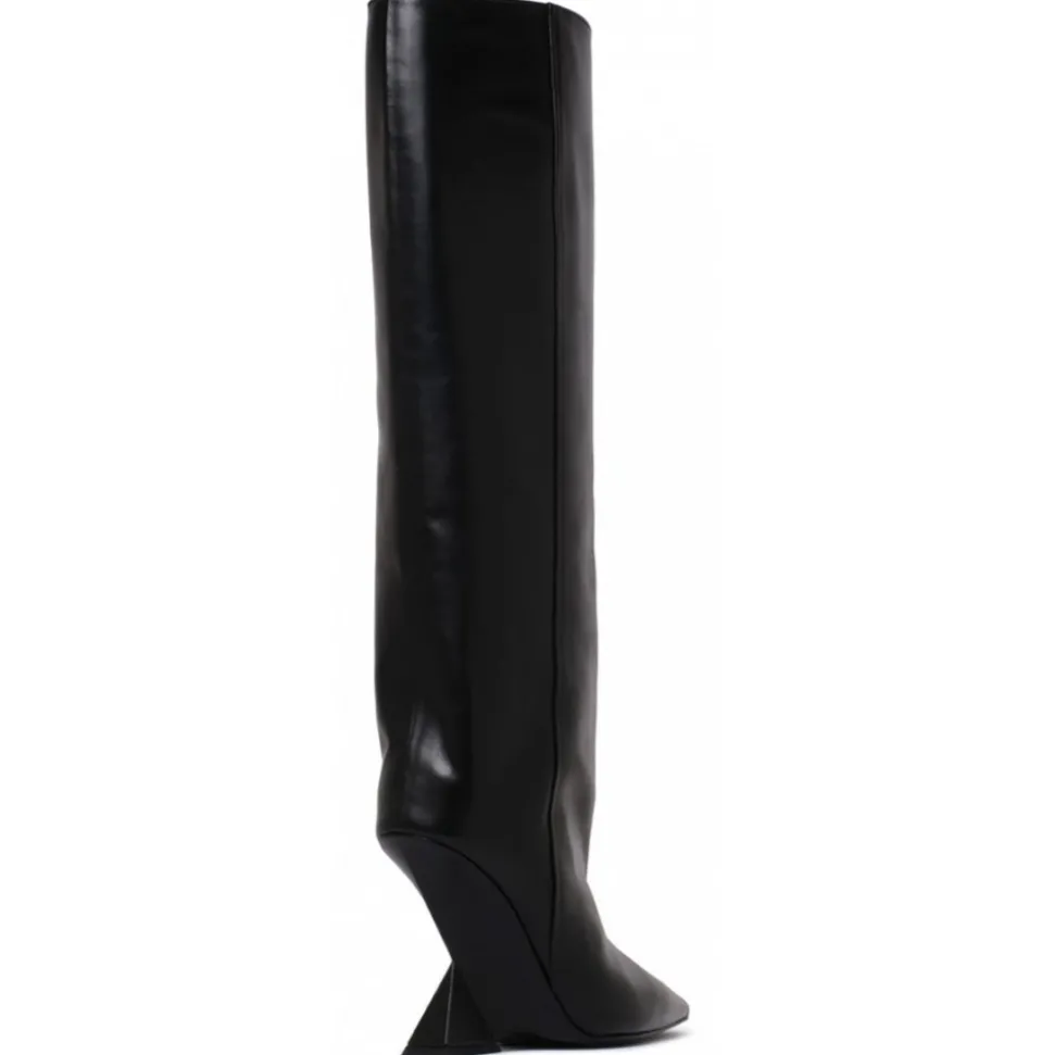 The Attico Cheope Tube Boot. Black calfskin tube boot with 105mm high pyramid wedge.