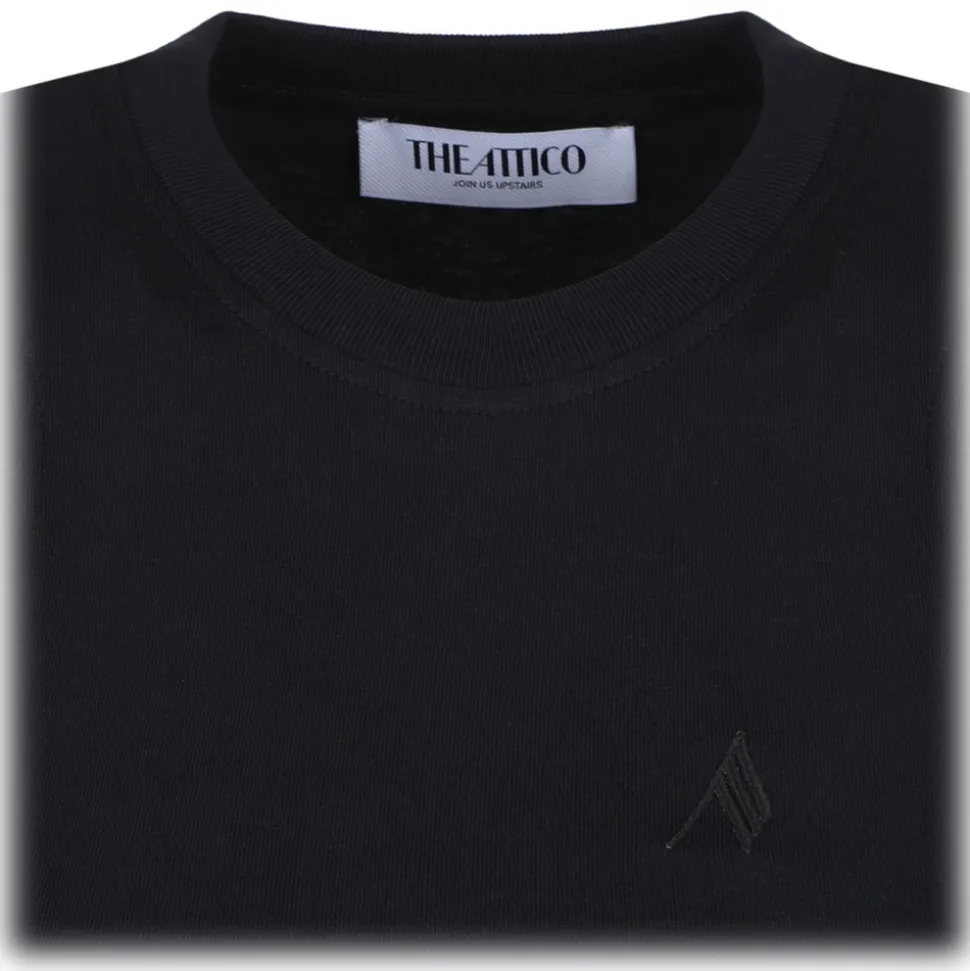 The Attico Black Reese Tank Top. Black cotton tank top, crew neck, sleeveless, embroidered logo at the chest.