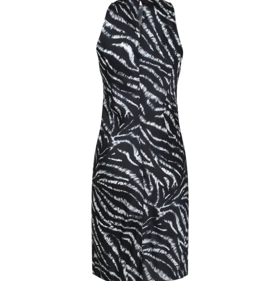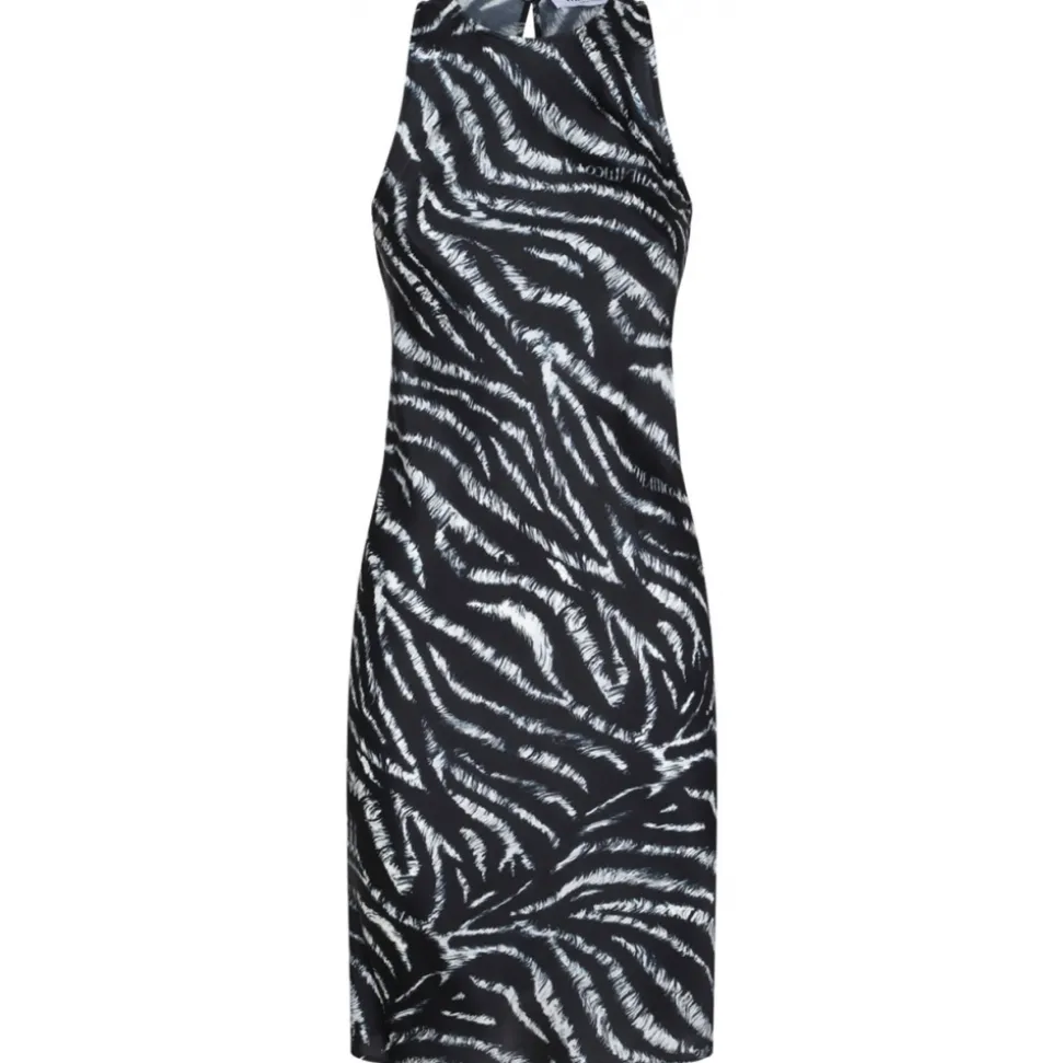 The Attico Black Zebra Print Mini Dress. Black mini dress, zebra print, single rear button fastening, round neck, sleeveless, straight hem.