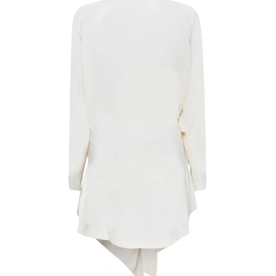 The Attico Ivory Wool Hurley Wrap Mini Dress. Ivory wool mini dress, wrap design, ring hardware detailing, V neck, long sleeves, buttoned cuffs, draped design and asymmetric hem.