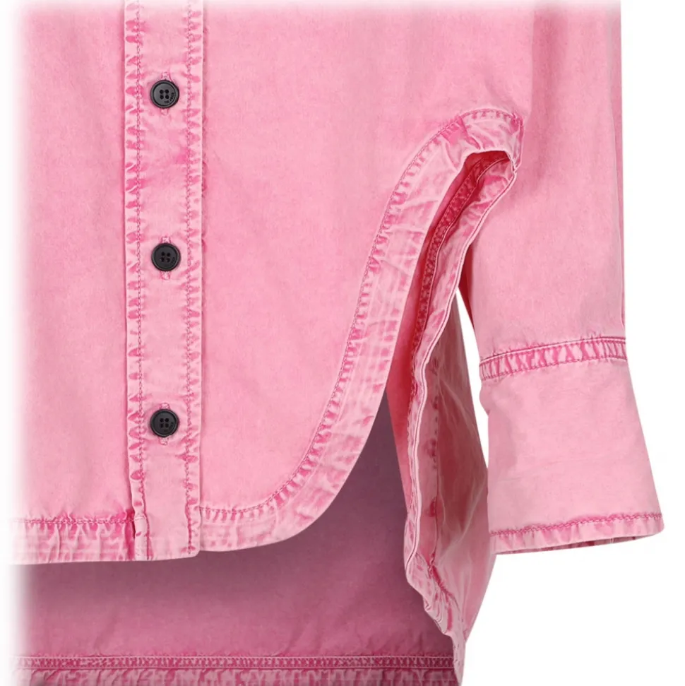 The Attico Pink Diana Shirt. Pink cotton shirt, front button fastening, buttoned-cuff sleeves, slit detailing, embroidered logo at the chest.