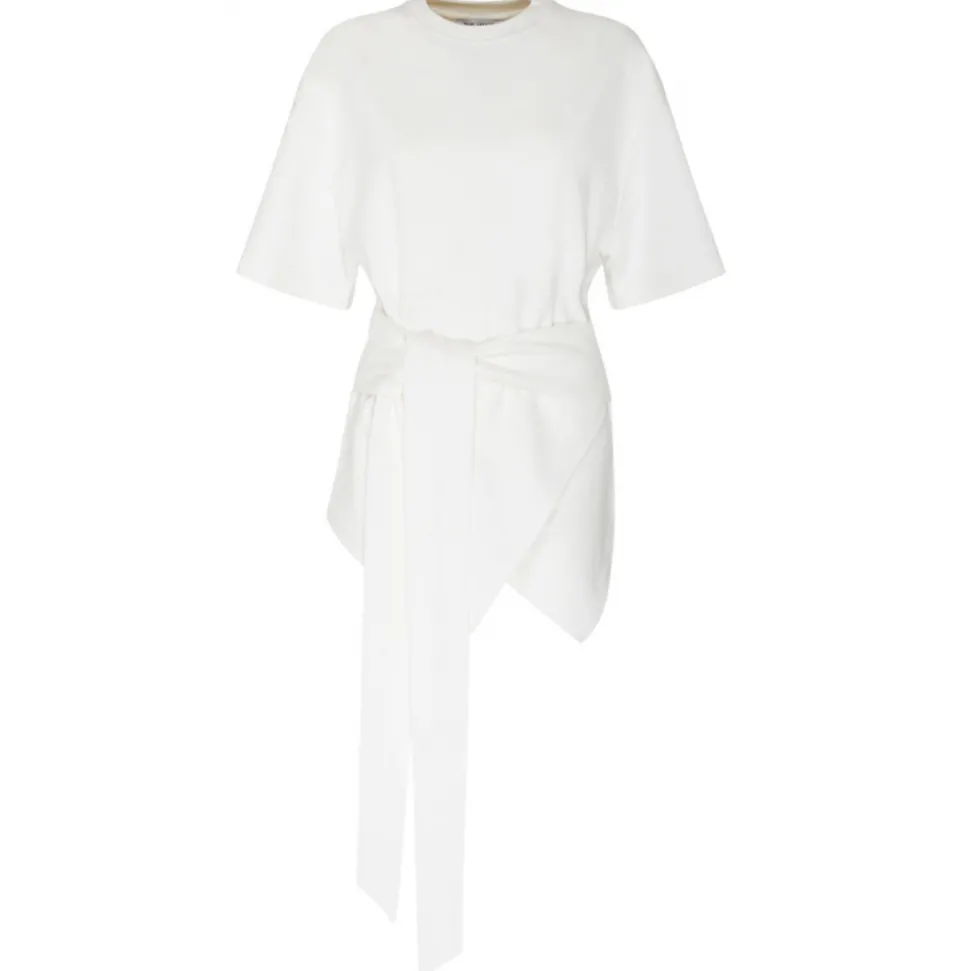 The Attico White Cotton Front Tie T-Shirt. White cotton t-shirt, front tie fastening, short sleeves, round neck, jersey knit, asymmetric hem.