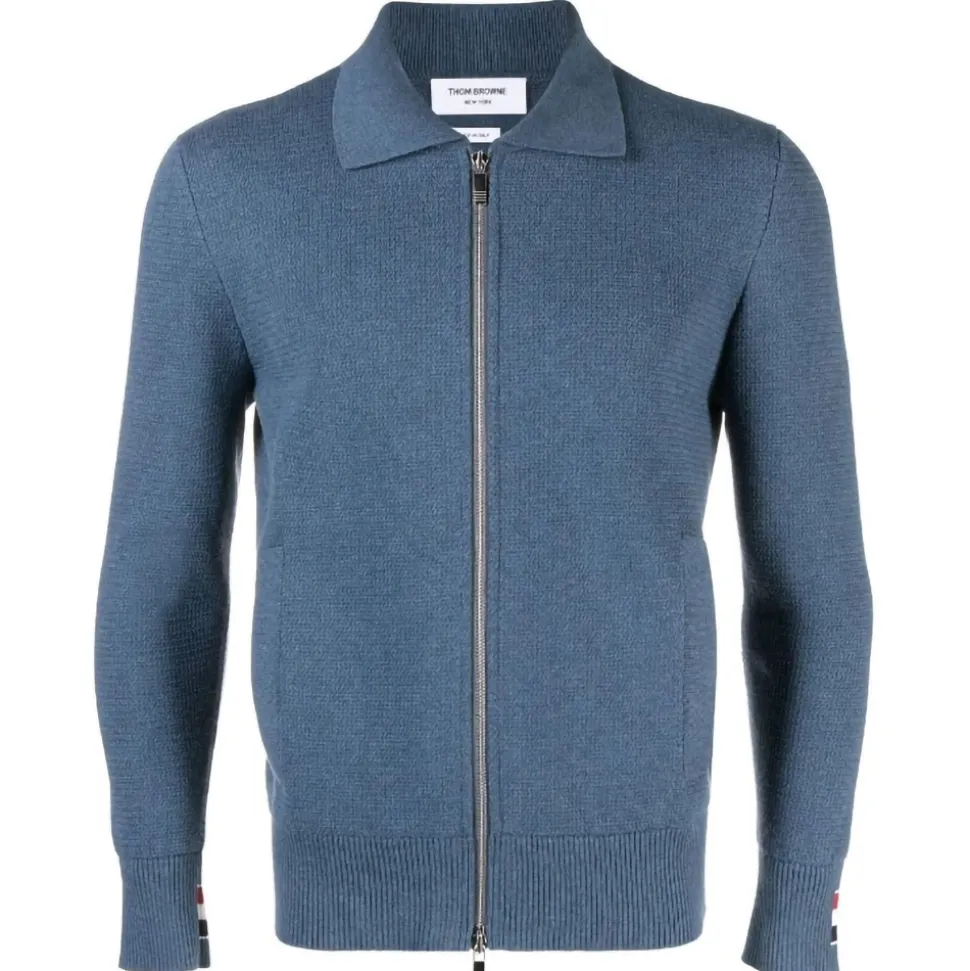 Thom Browne jacket man textured stitch bomber jacket in cotton w/ RWB stripe at the back.