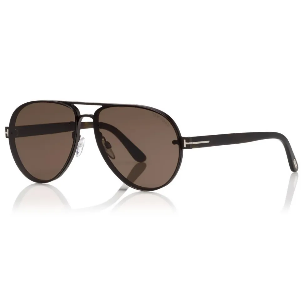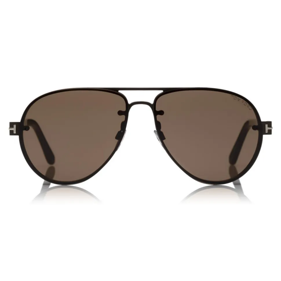 Matte aluminum front and acetate temple. Shiny metal T logo.