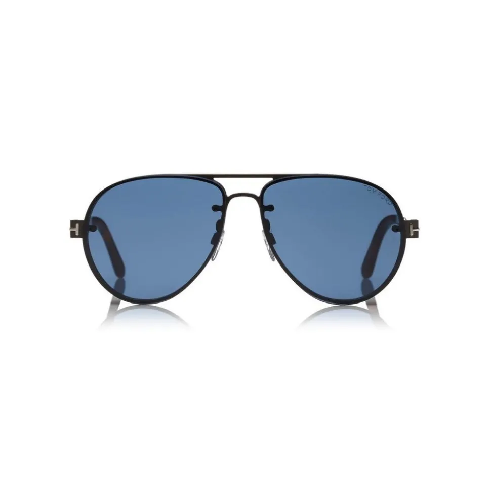 Matte aluminum front and acetate temple. Shiny metal T logo.