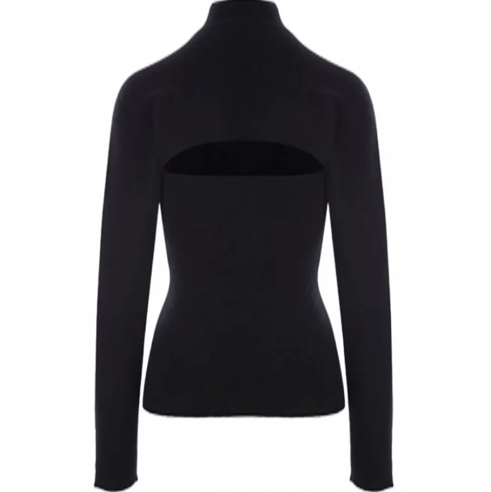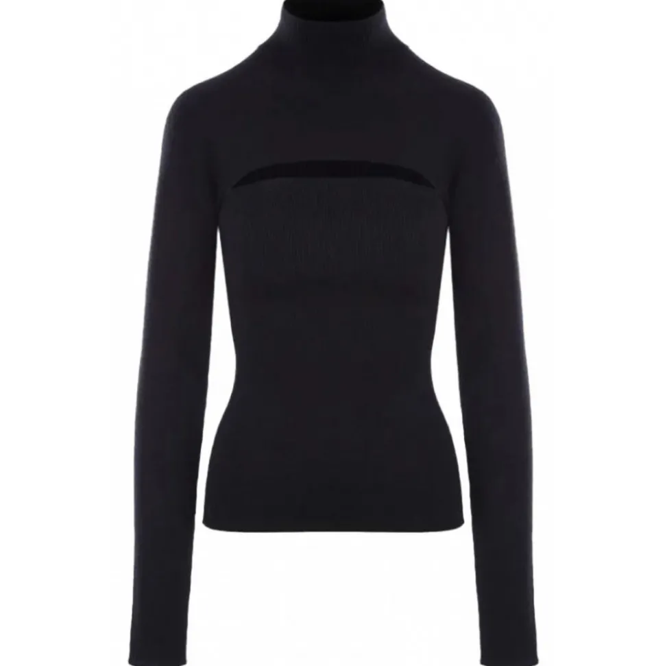 Black Virgin Wool Top. Black virgin wool top, cut out effect, high neck, long sleeves, slim fit.
