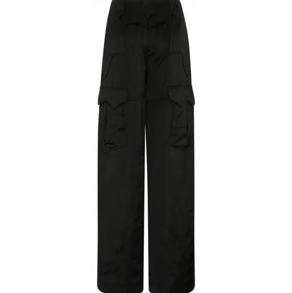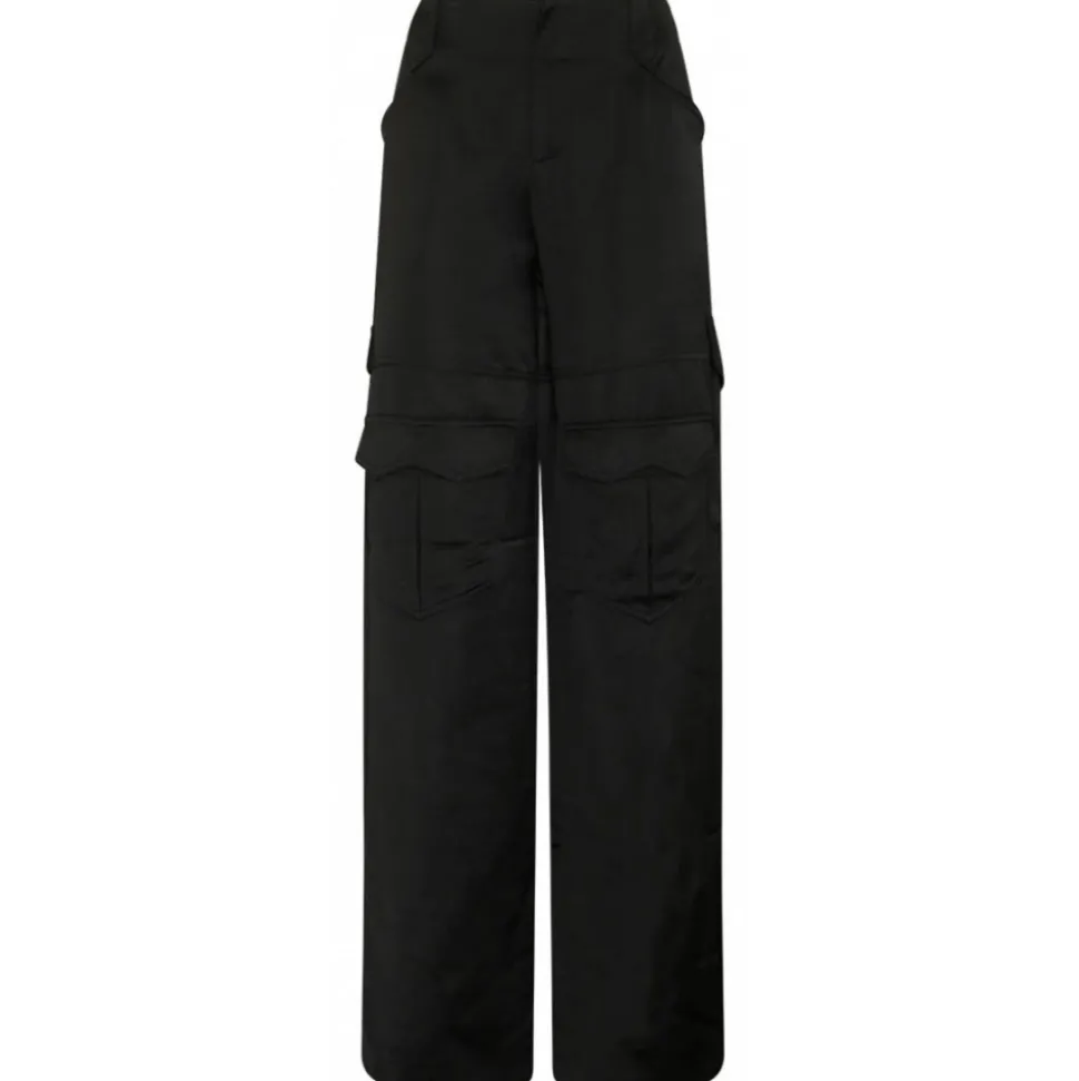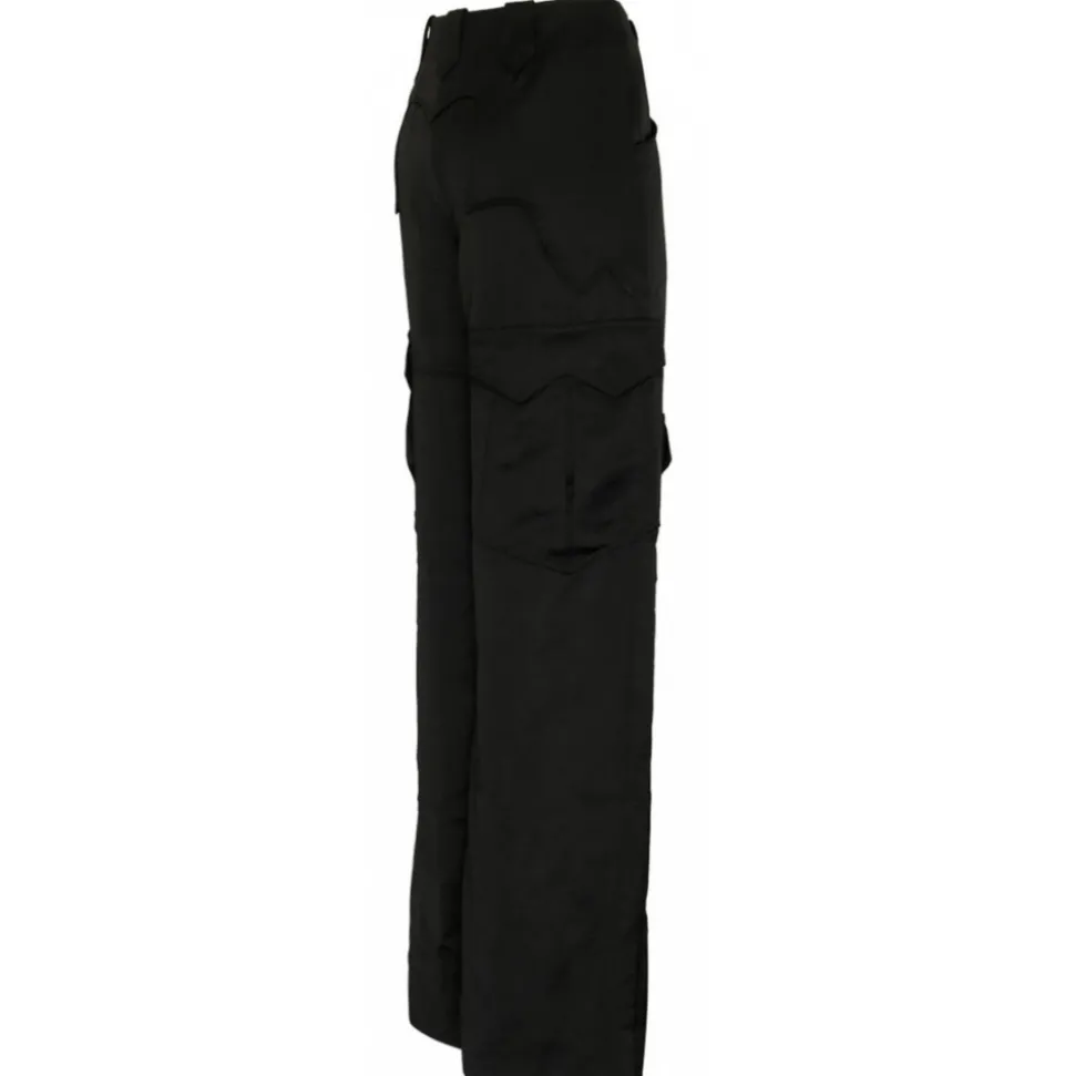 Tom Ford Black Satin Cargo Trousers. Black satin cargo trousers, belt loops, button fly fastening, multiple cargo pockets. High waist and wide leg.