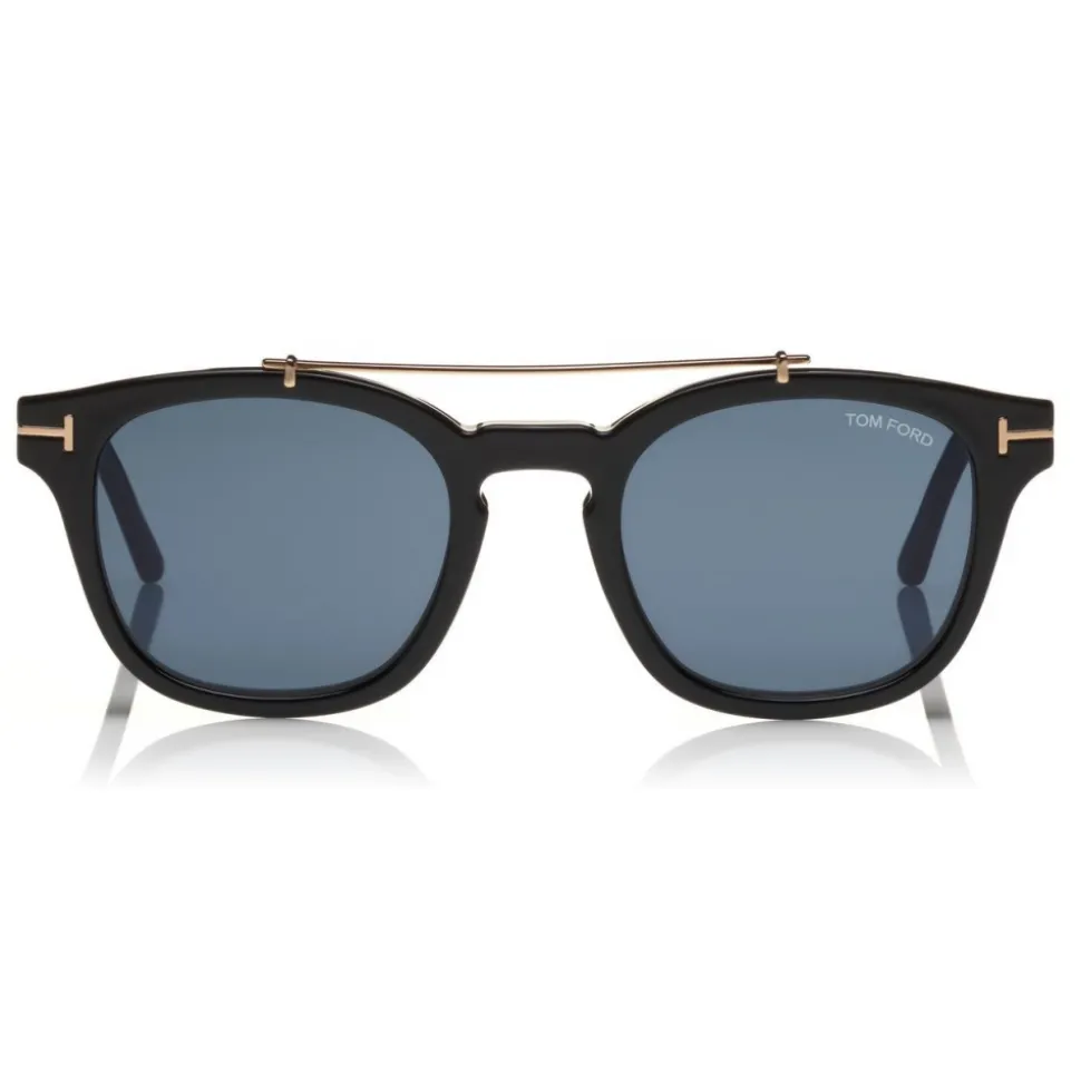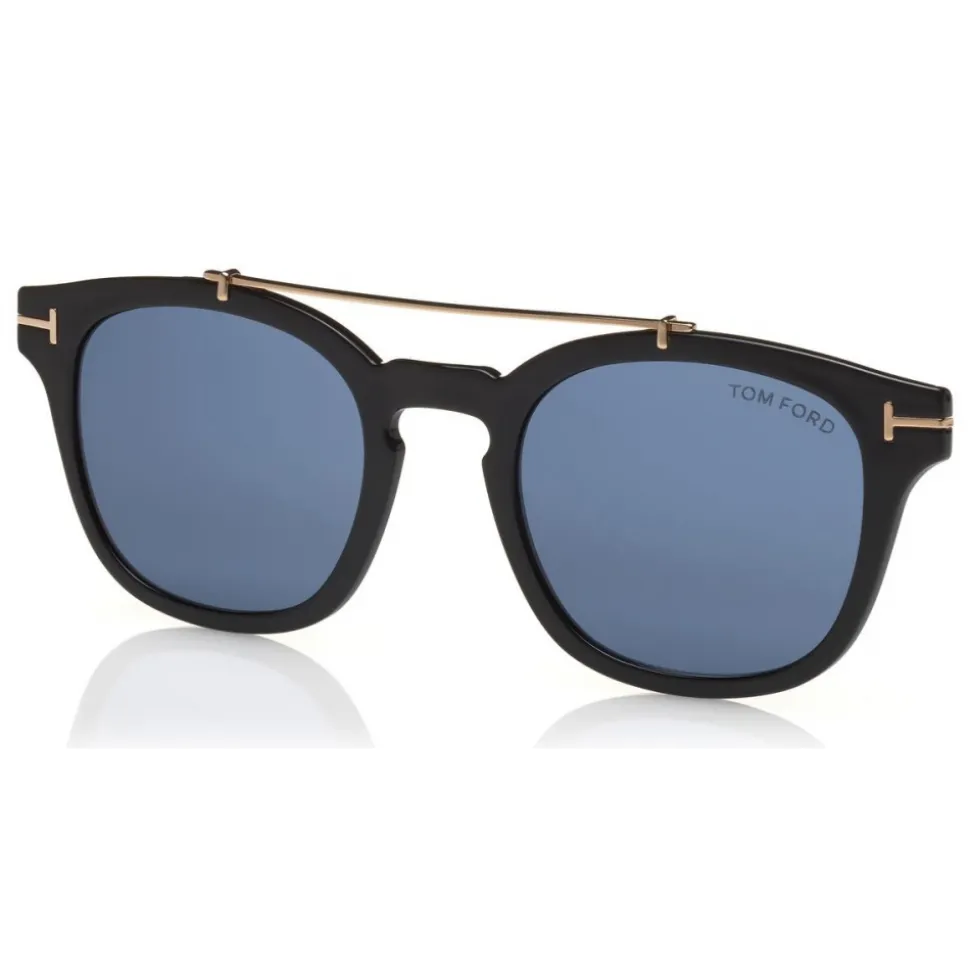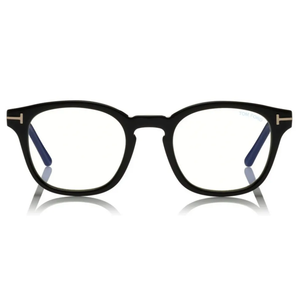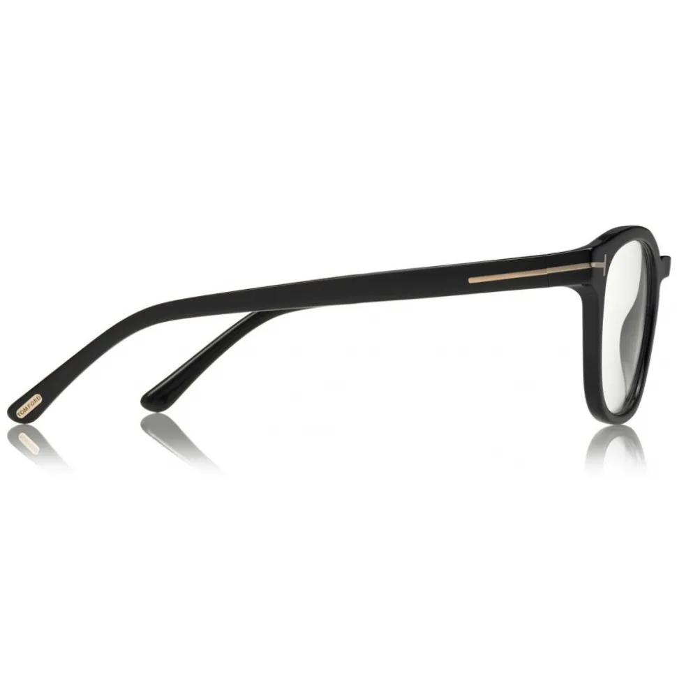 Discover the latest ready-to-wear clear lenses now available in TOM FORD Eyewear. These special lenses intended to prevent and relieve eye strain caused by long exposure to blue light from digital devices, increasing visual comfort. Soft rounded acetate style with metal T temple decoration. The style comes with an exclusive magnetic clip-on in real leather or acetate.