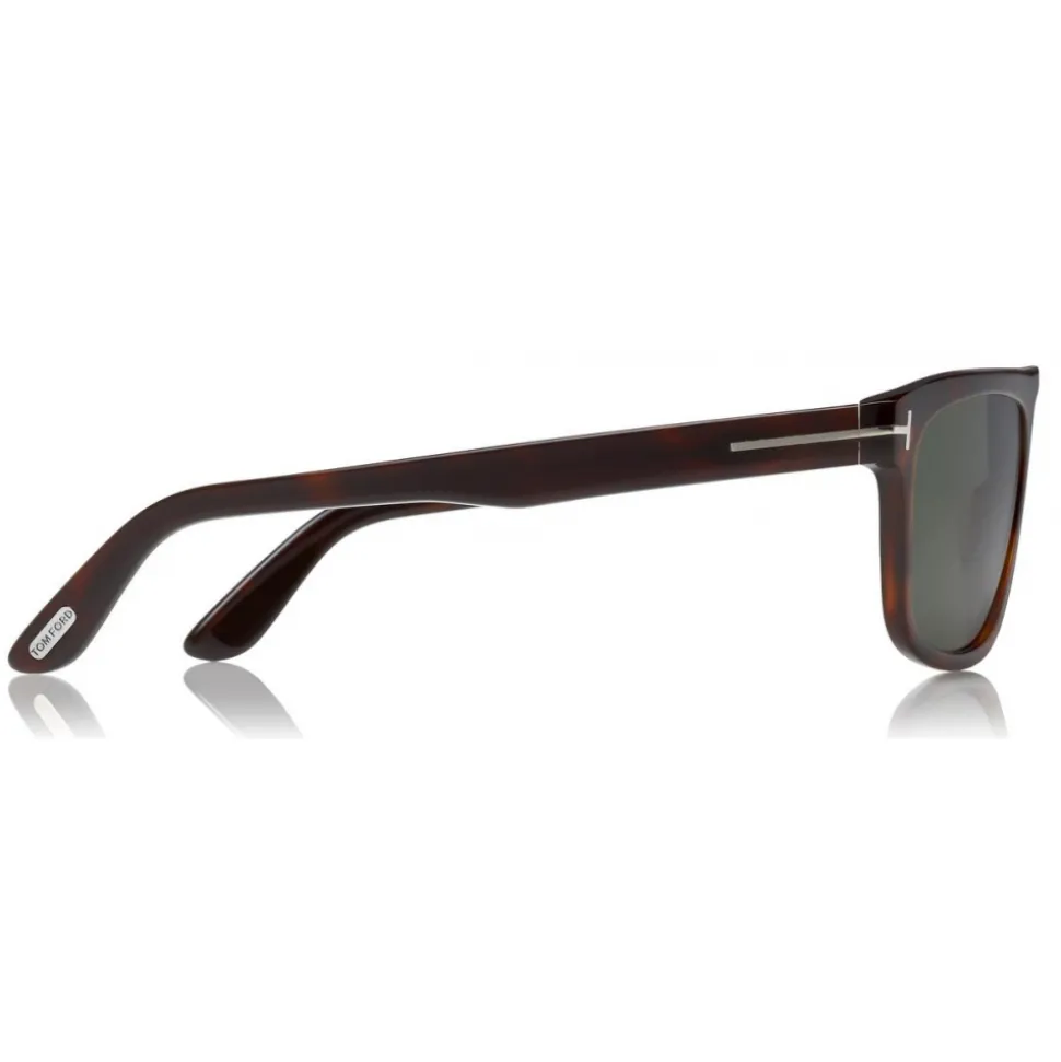 Shiny dark havana acetate style with shiny palladium metal T temple decoration and top bar with green lenses