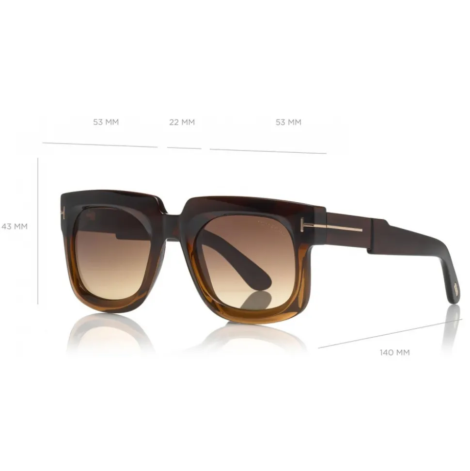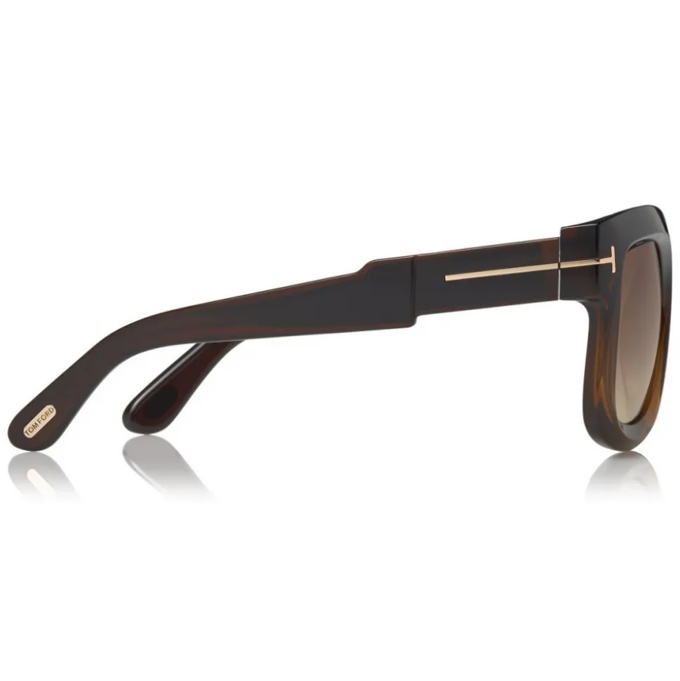Soft squared plastic style with metal ‘T’ logo decoration and edgy temples.