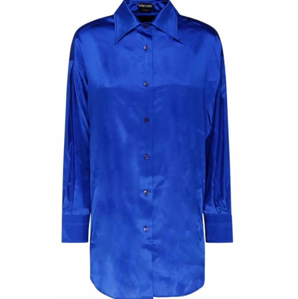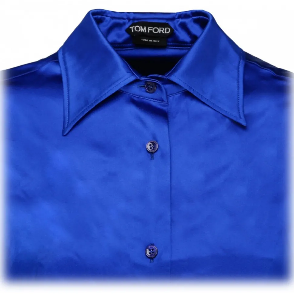 Tom Ford Cobalt Blue Silk Long Sleeve Shirt. Cobalt blue silk shirt, classic collar, front button fastening, buttoned cuffs, straight hem, rear curved hem.