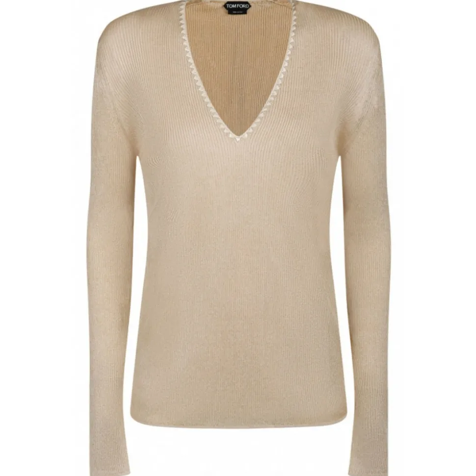 Tom Ford – Light Beige V Neck Sweater – Tom Ford Exclusive Luxury Collection