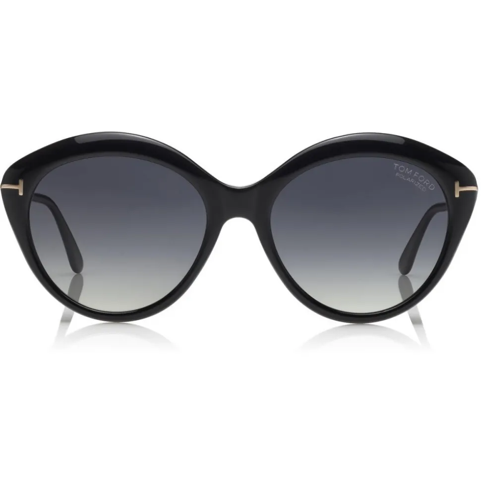 Soft rounded curved acetate shape with metal ‘T’ logo decoration.
