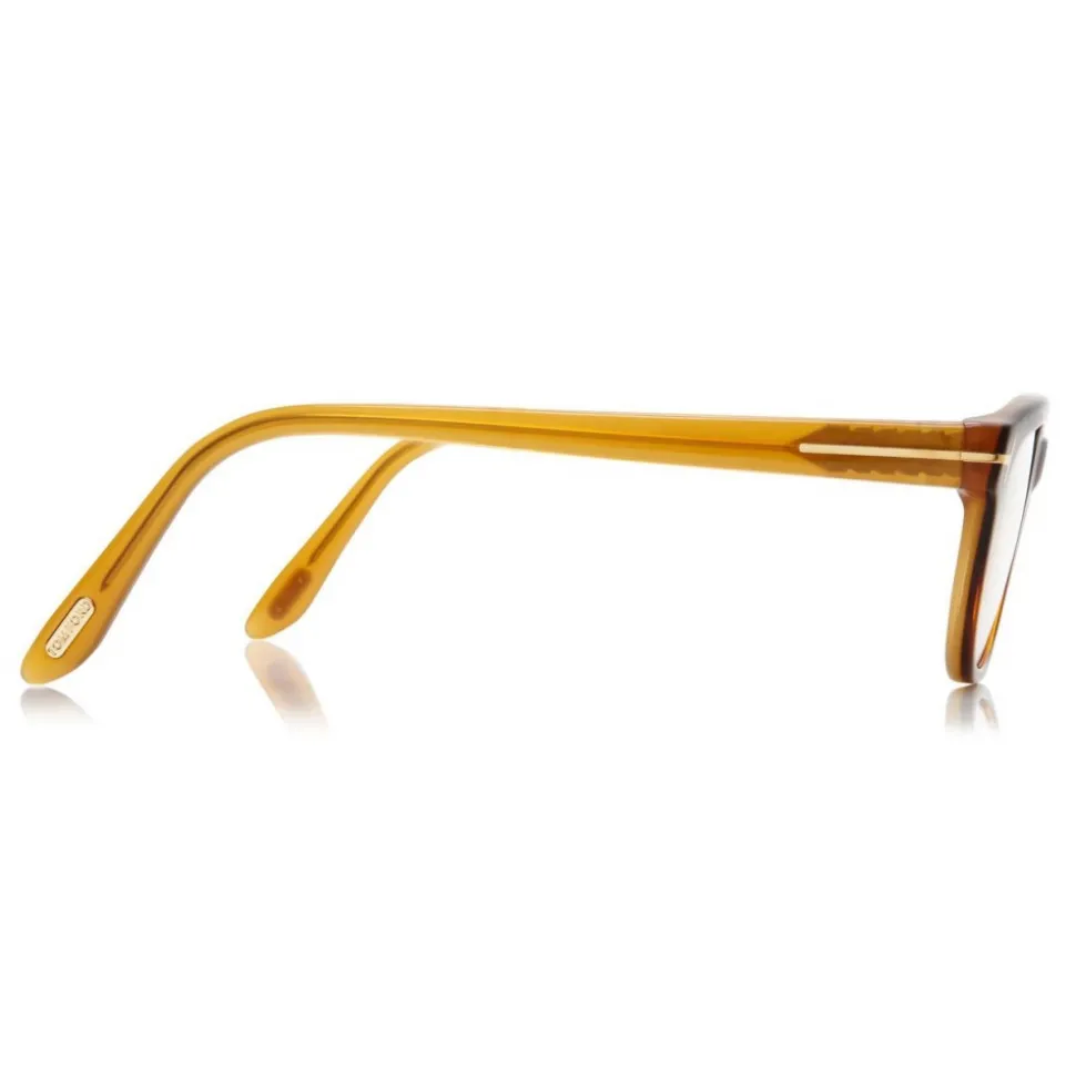 Double-layer shiny black exterior and havana interior acetate frame with rose gold metal ‘T’ logo.