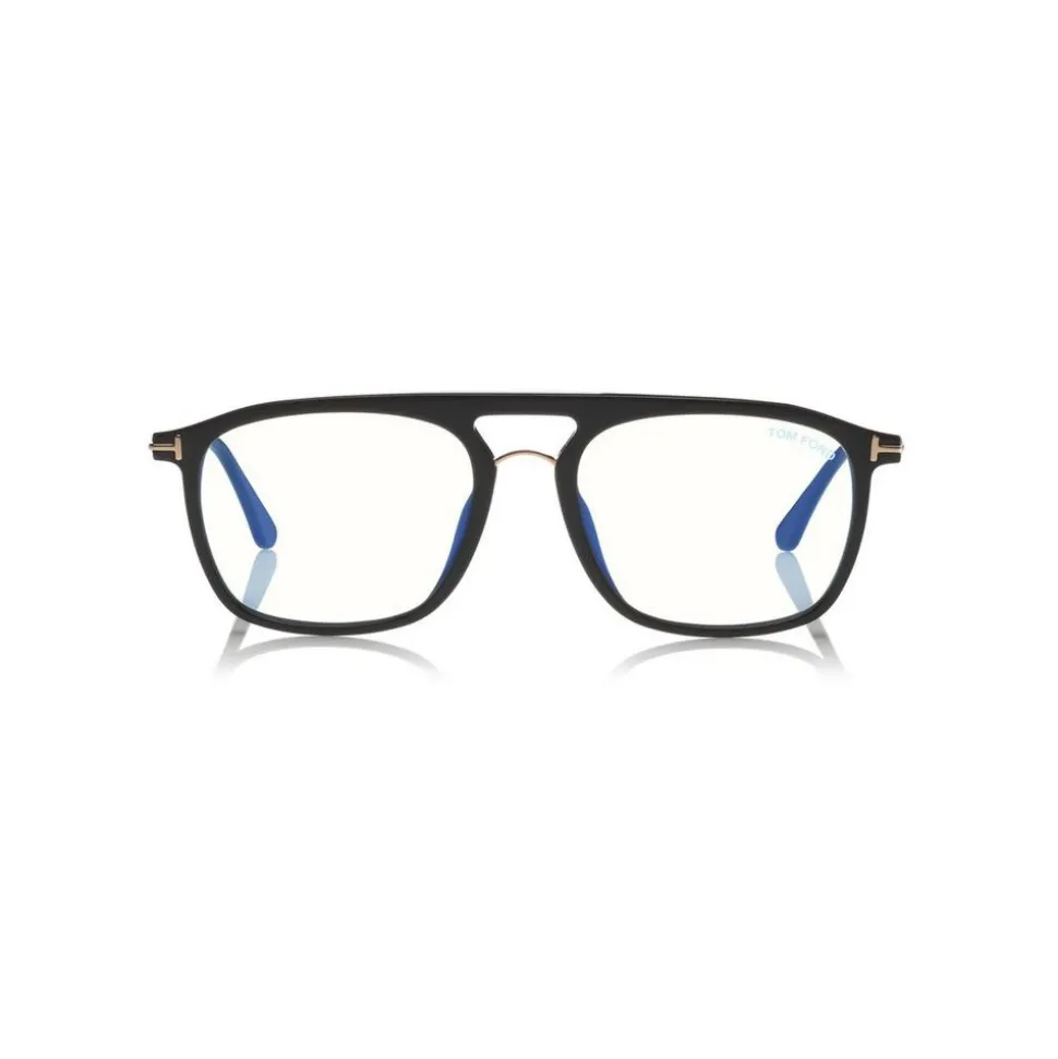 Discover the latest ready-to-wear clear lenses now available in TOM FORD Eyewear. These special lenses intended to prevent and relieve eye strain caused by long exposure to blue light from digital devices, increasing visual comfort. Soft squared acetate style with metal temples and ‘T’ logo decoration, which is also the hinge the allows the movement of temples.
