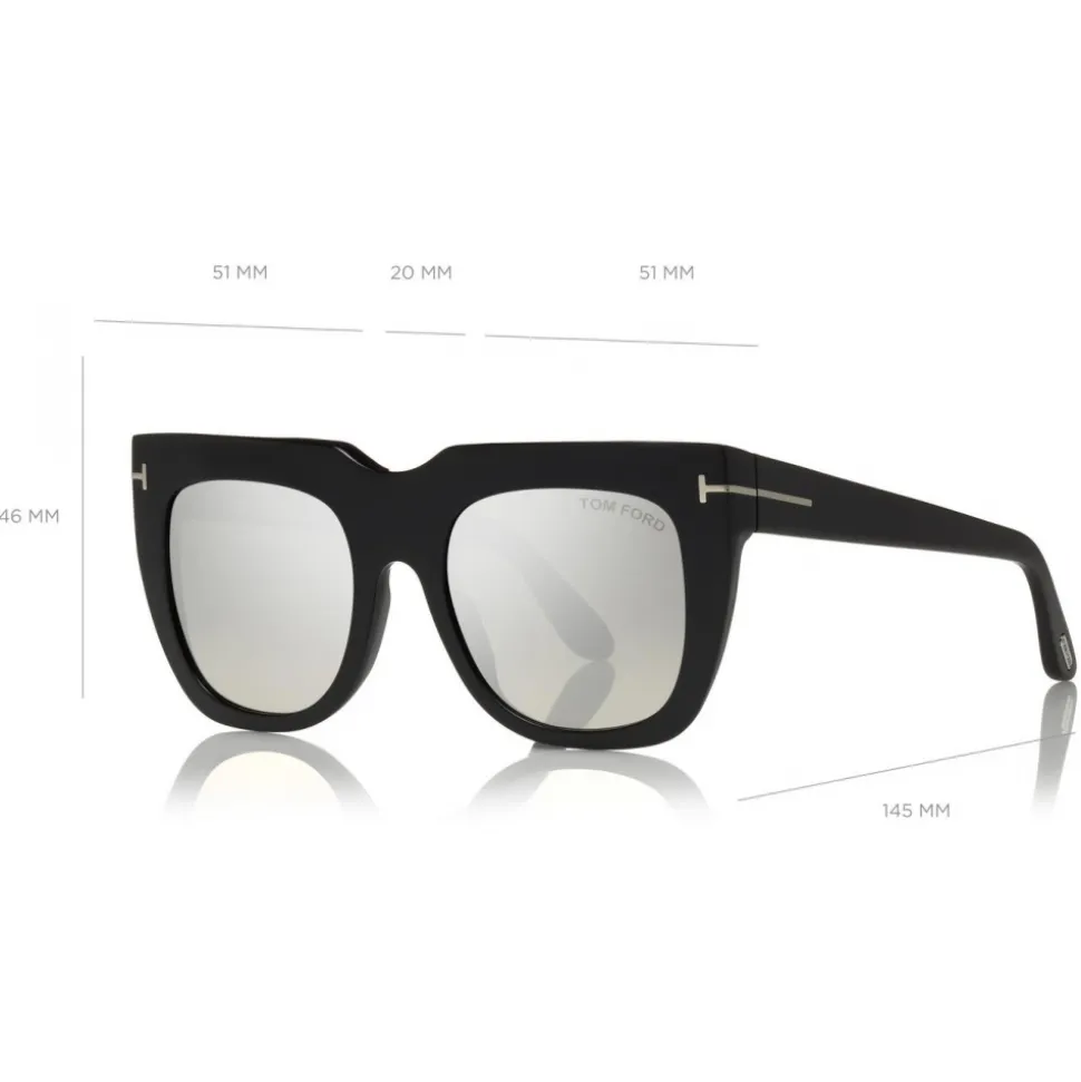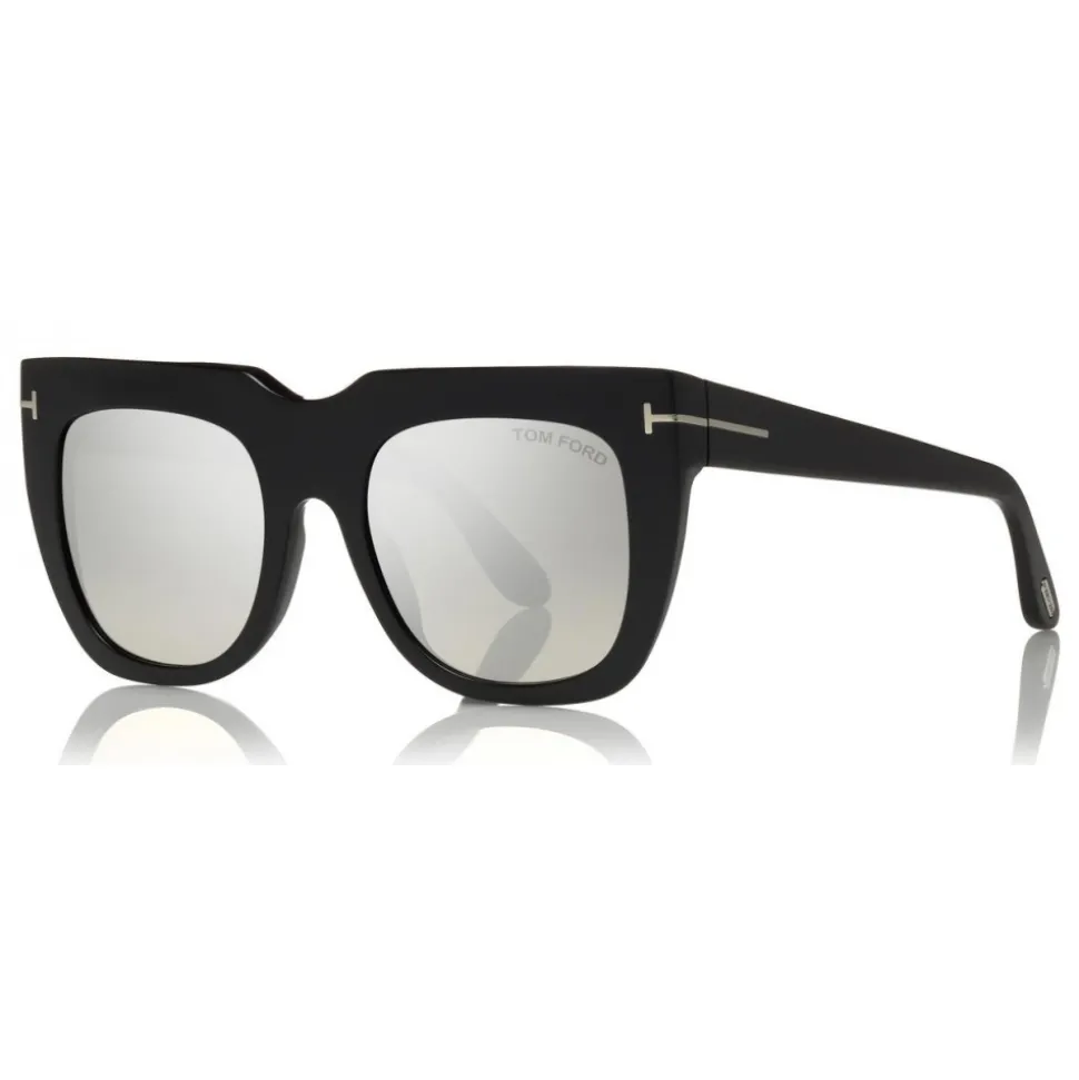 Soft squared acetate shape. The style is characterized by bold profile and metal T logo decoration.