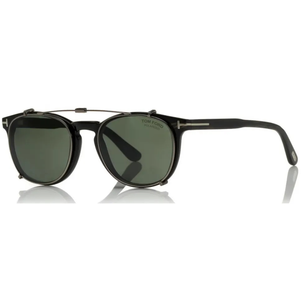 Soft squared real horn frame with signature metal ‘T’ temple decoration.