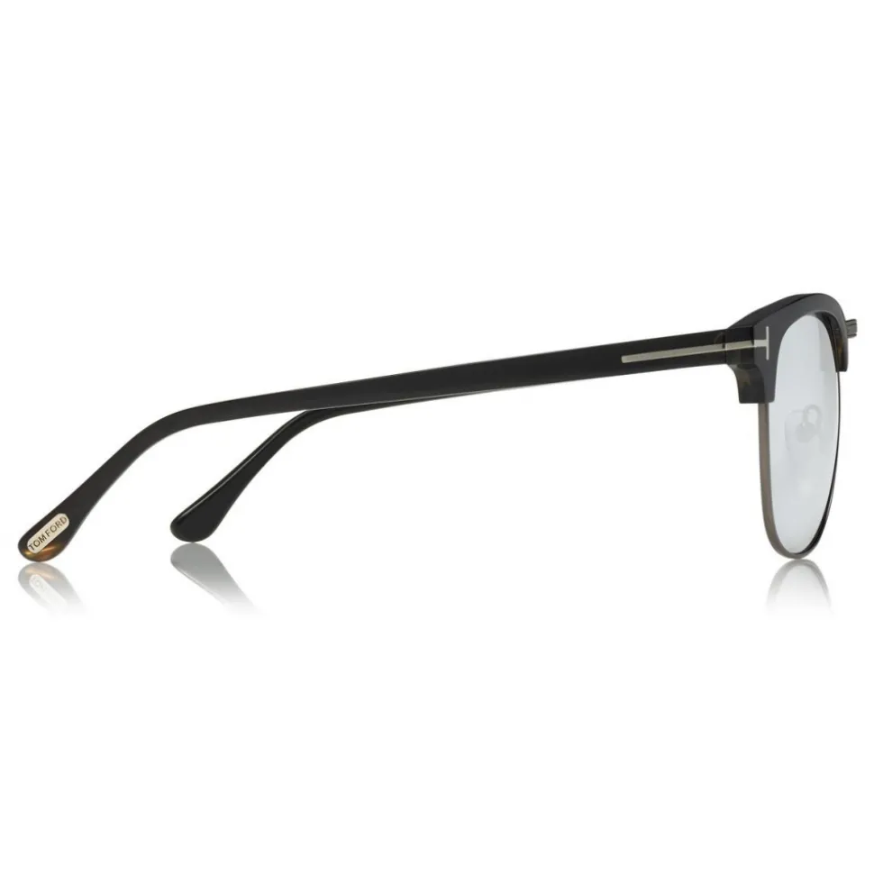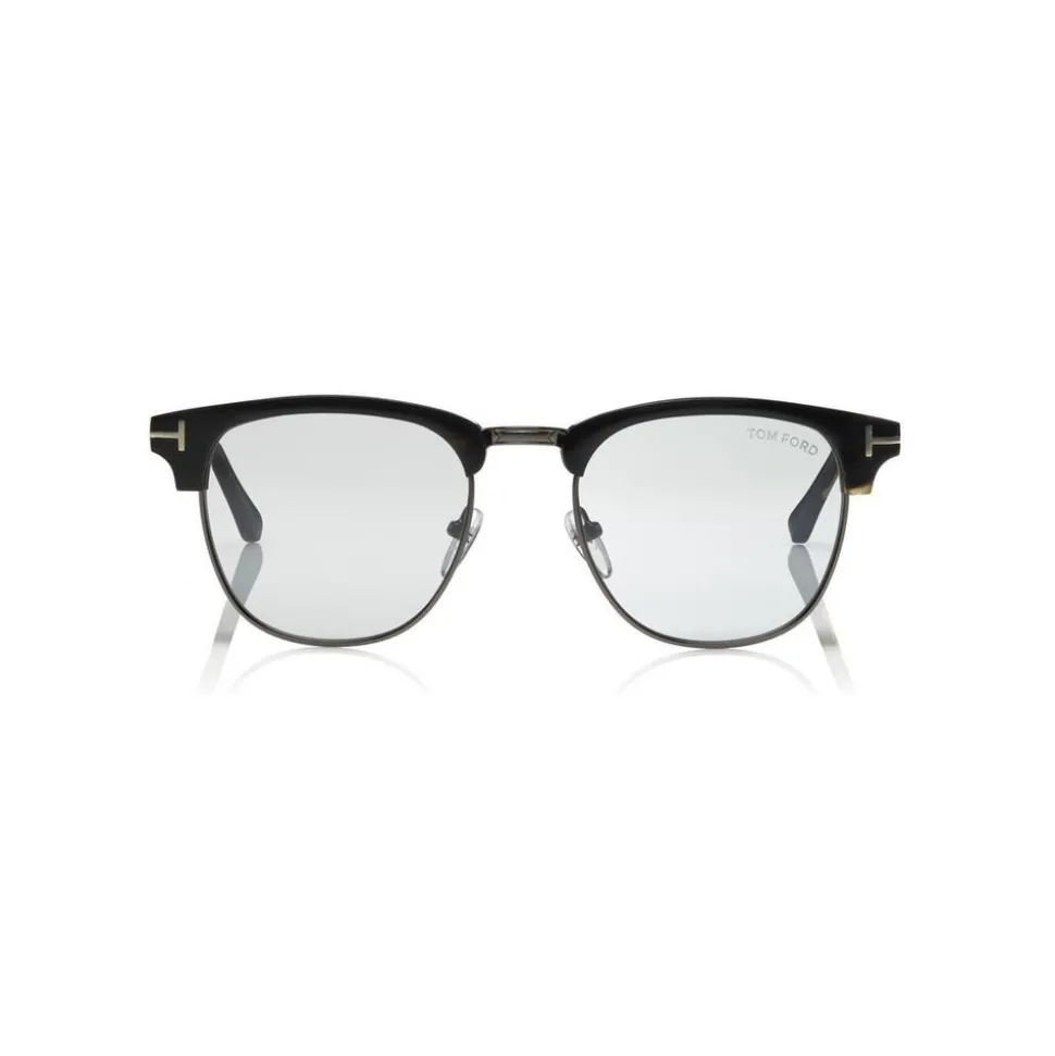 The Tom Ford Private Collection is an exclusive edition of sunglasses and optical frames based on the eyewear that Mr. Ford wears every day. Browline style in real buffalo horn, with photochromic lenses and metal T logo decoration. Real water buffalo horn is selected for its luxurious finish and natural pattern that gives each piece its unique quality.