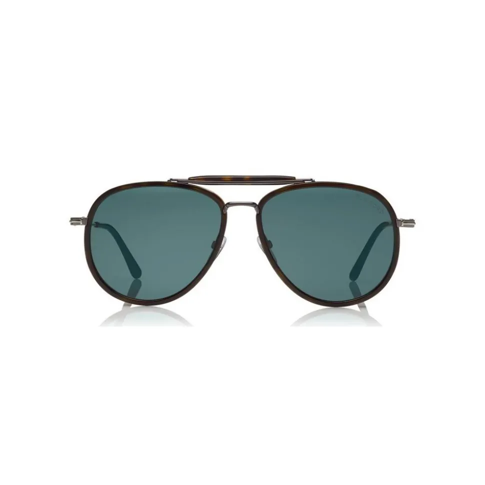 “Soft pilot combined shape. A combination between acetate and metal, where the acetate disappears behind the lenses. Metal T logo decoration and sweat bar. Adjustable nose pads.”