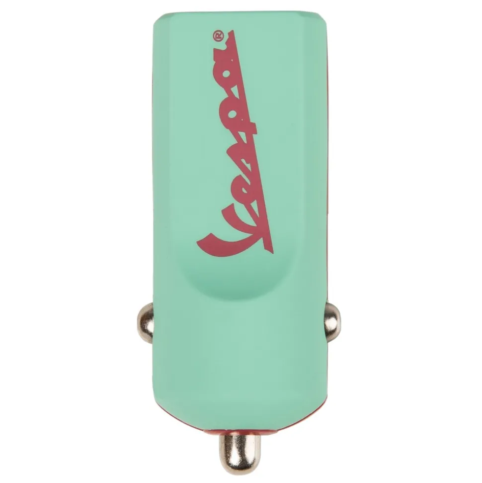 Tribe’s car charger has a small profile but a big personality, as in this rubberised-finish model inspired by the legendary Vespa, an undisputed icon of Italian pop culture, here in its inimitable turquoise aquamarine version.