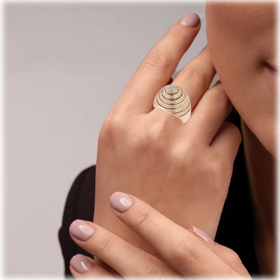 Egg-shaped ring in pink silver with white zircon pavé in concentric circles.