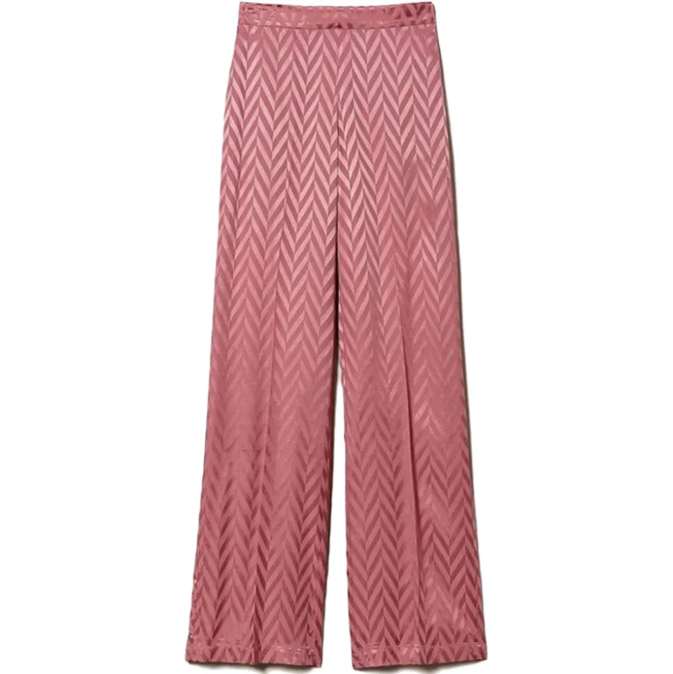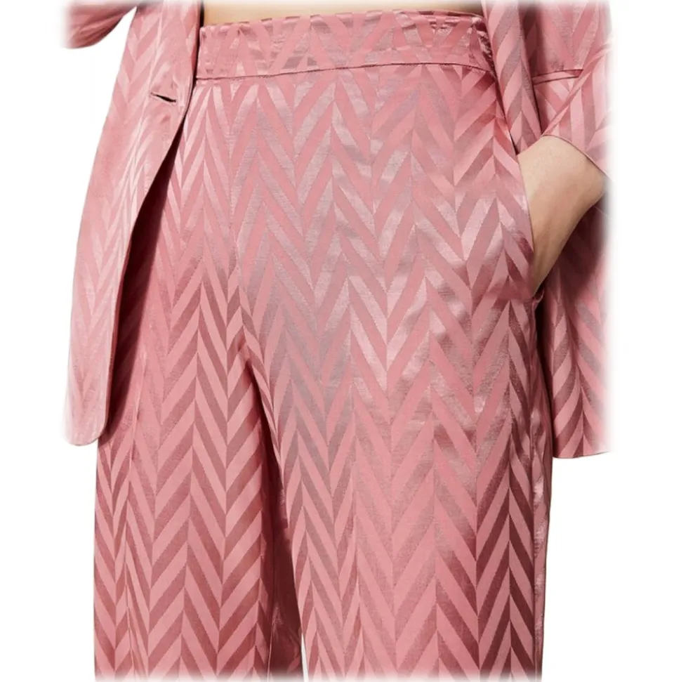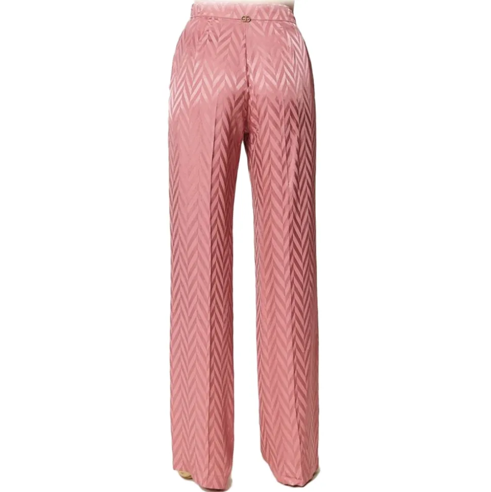 Twinset – Chevron Design Wide Leg Trousers – Pink – Trousers – Made in Italy – Luxury Exclusive Collection