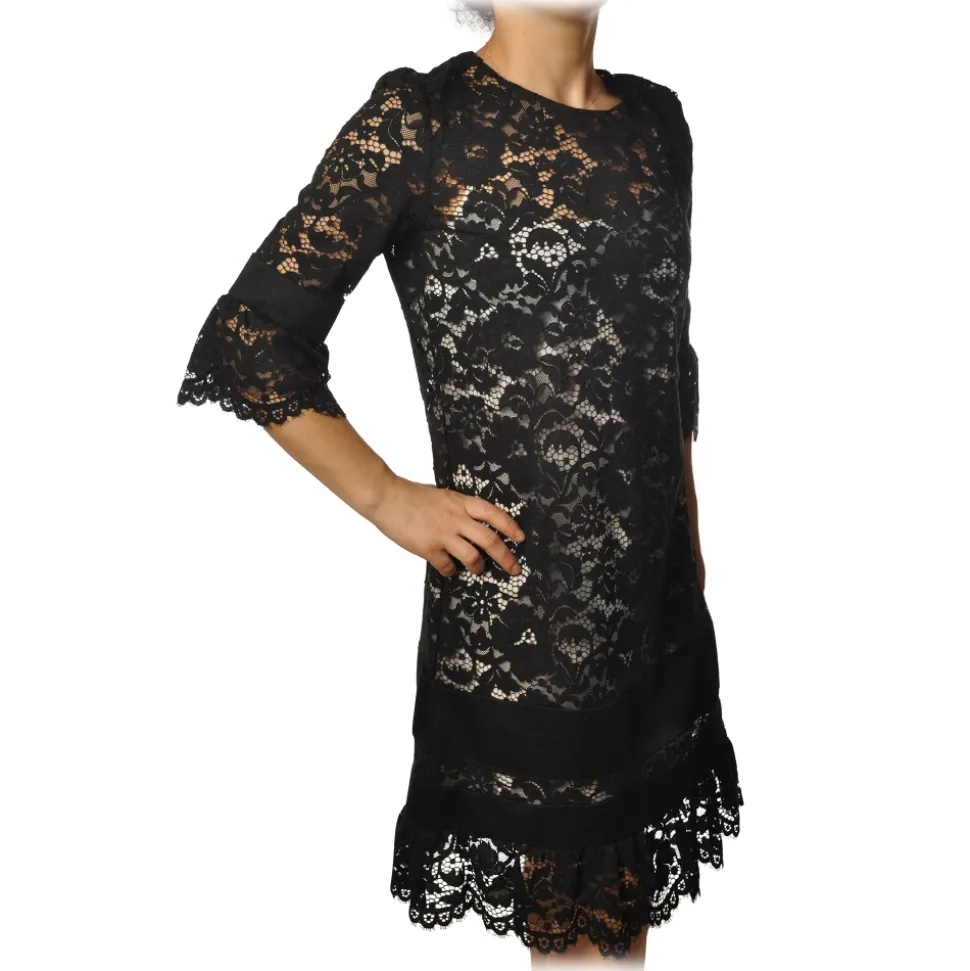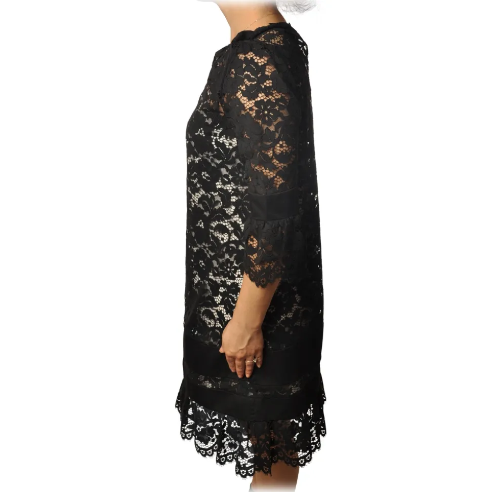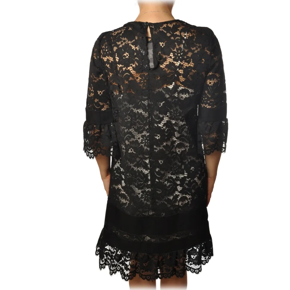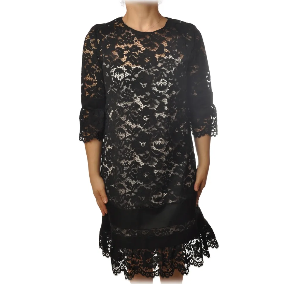 Twinset – Crewneck Dress in Lace – Black – Dress – Made in Italy – Luxury Exclusive Collection