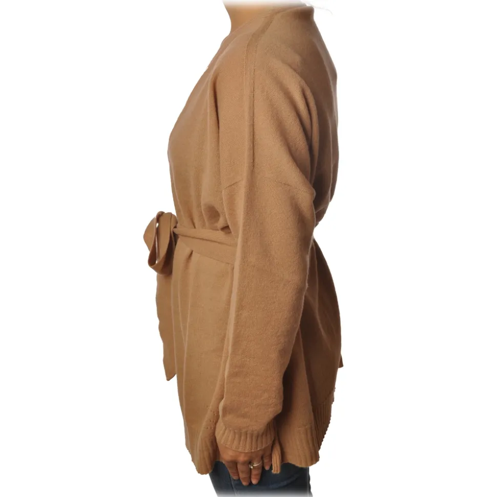 Twinset – Long Cardigan with Belt – Camel – Knitwear – Made in Italy – Luxury Exclusive Collection