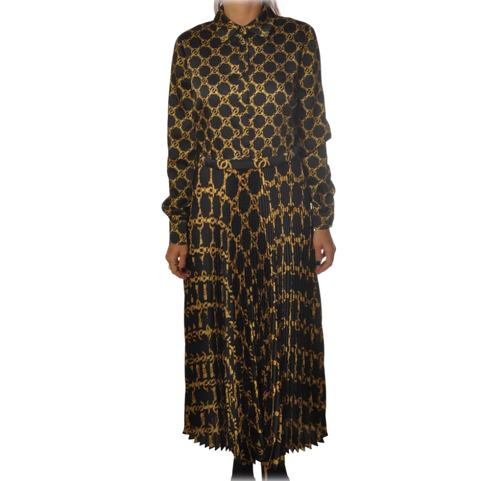 Twinset – Long Dress Chemisier with Long Sleeve Shirt Cuff – Black Gold – Dress – Made in Italy – Luxury Exclusive Collection
