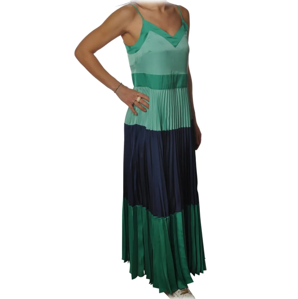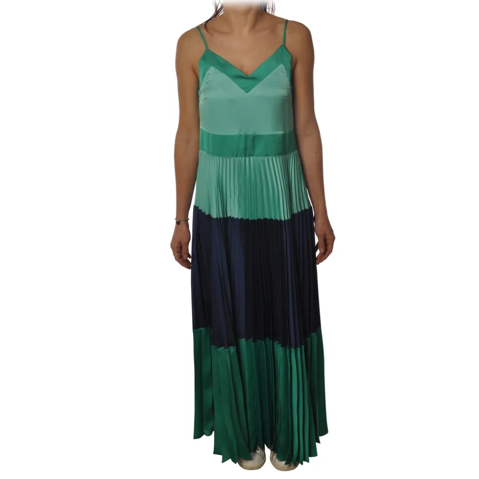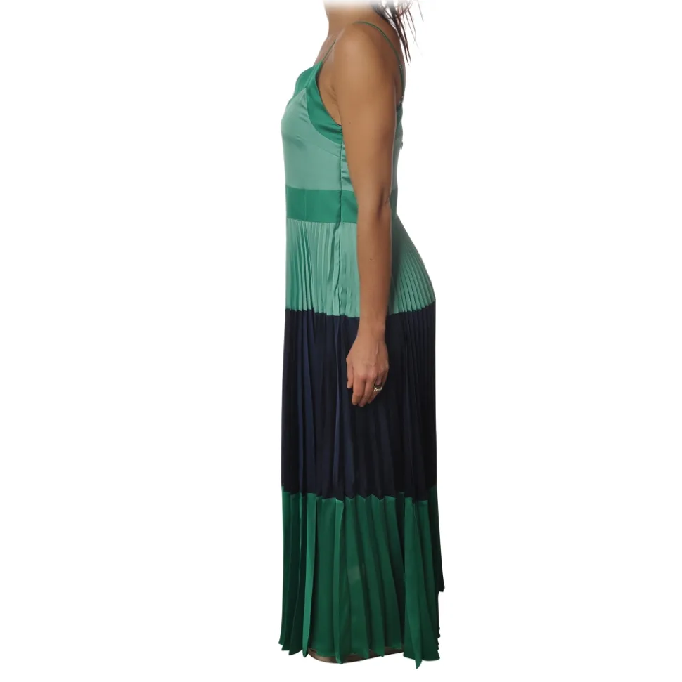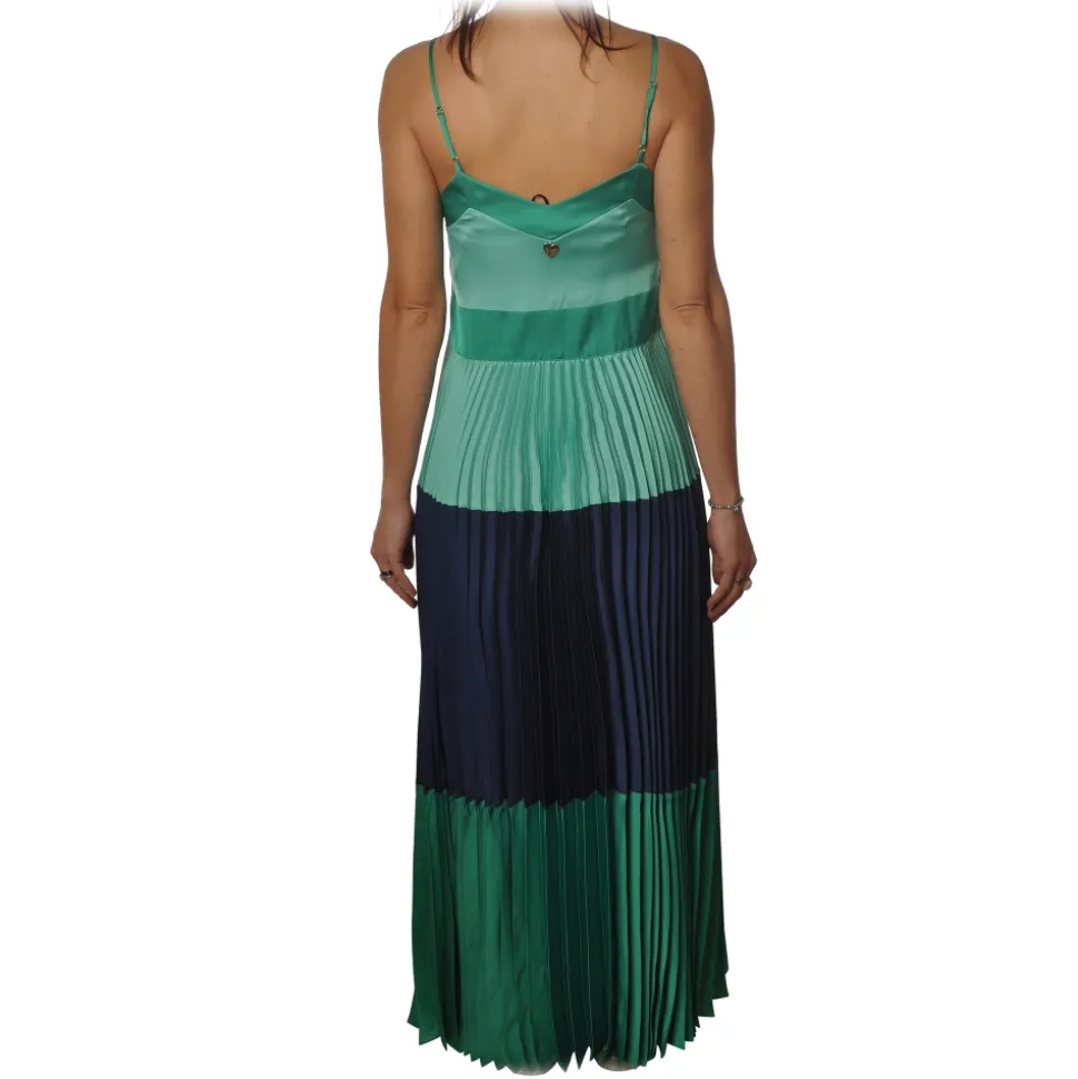 Twinset – Long Dress with Pleated Skirt in Satin – Green/Blue – Dress – Made in Italy – Luxury Exclusive Collection