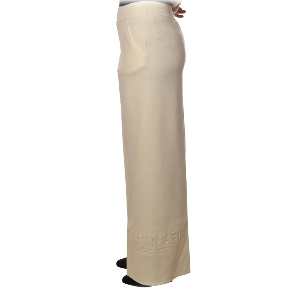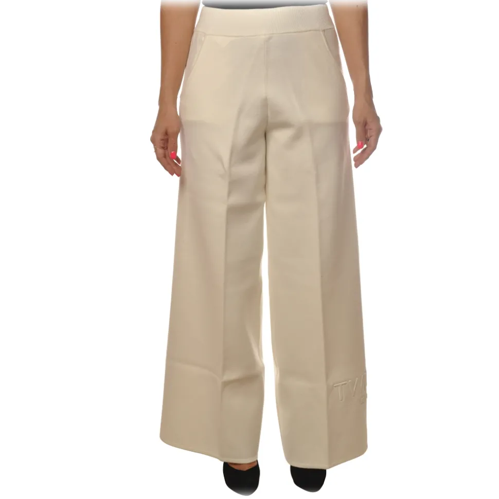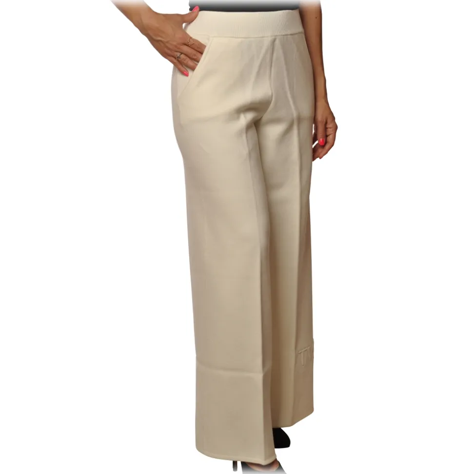 Twinset – Palazzo Trousers in Knit – White – Trousers – Made in Italy – Luxury Exclusive Collection