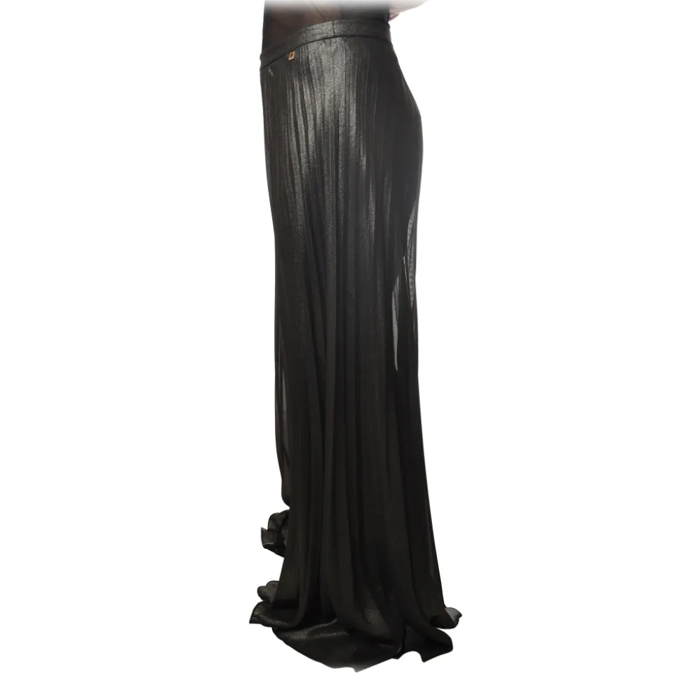 Twinset – Palazzo Trousers With Plated Effect – Black – Trousers – Made in Italy – Luxury Exclusive Collection