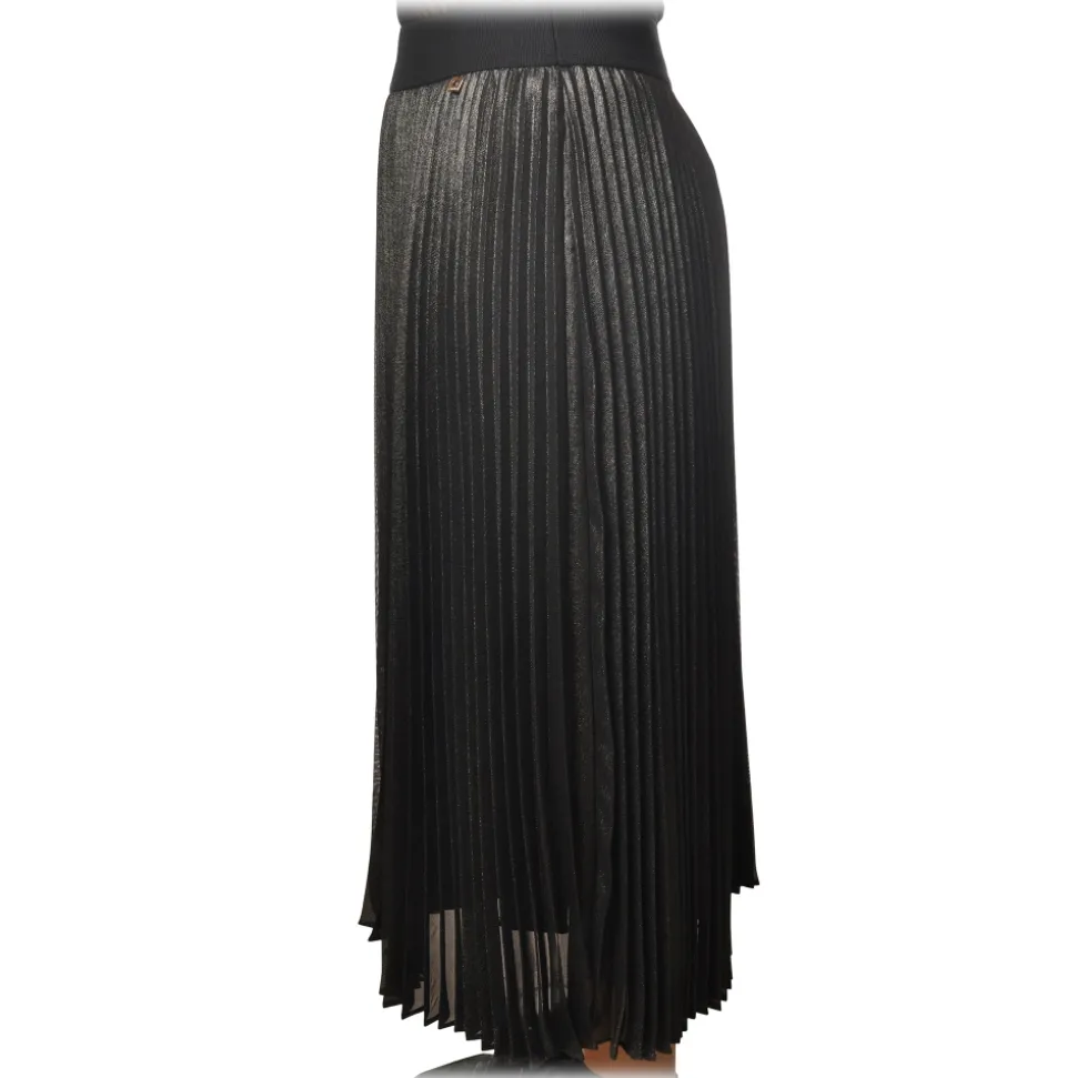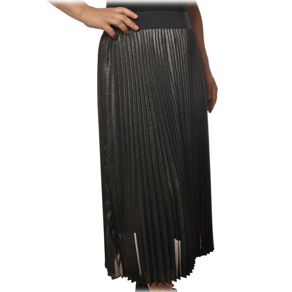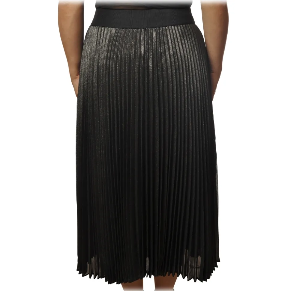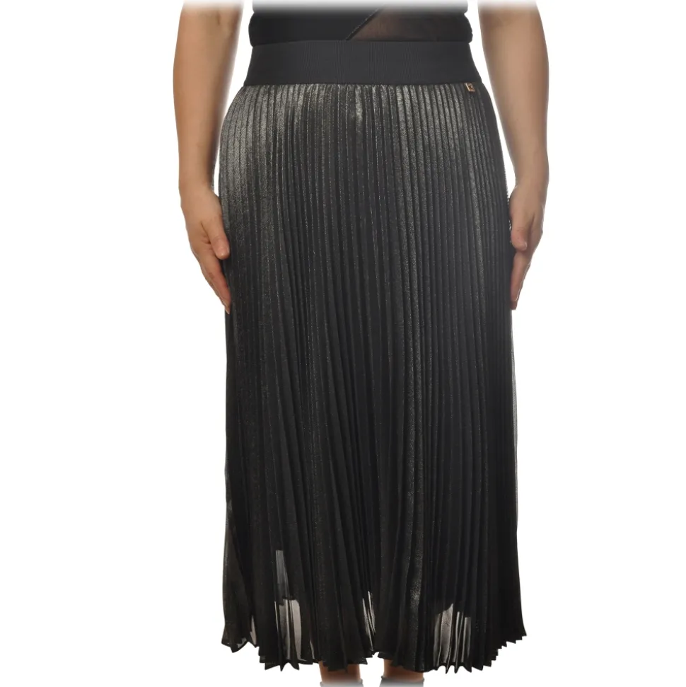 Twinset – Pleated Longuette Skirt Lamè Effect – Anthracite – Skirt – Made in Italy – Luxury Exclusive Collection