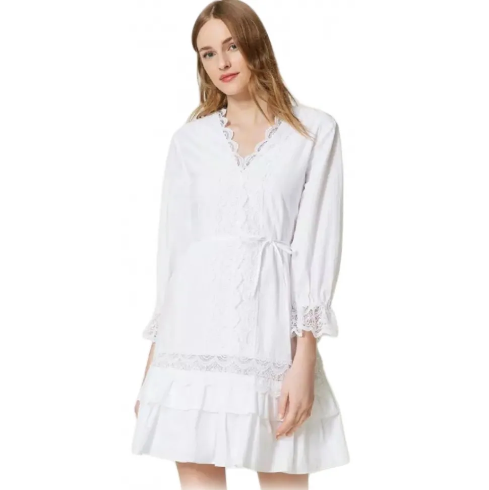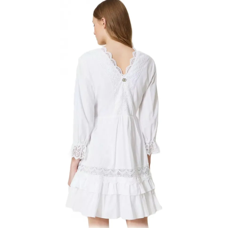 Twinset – Short Dress with Macramè Lace – White – Dress – Made in Italy – Luxury Exclusive Collection