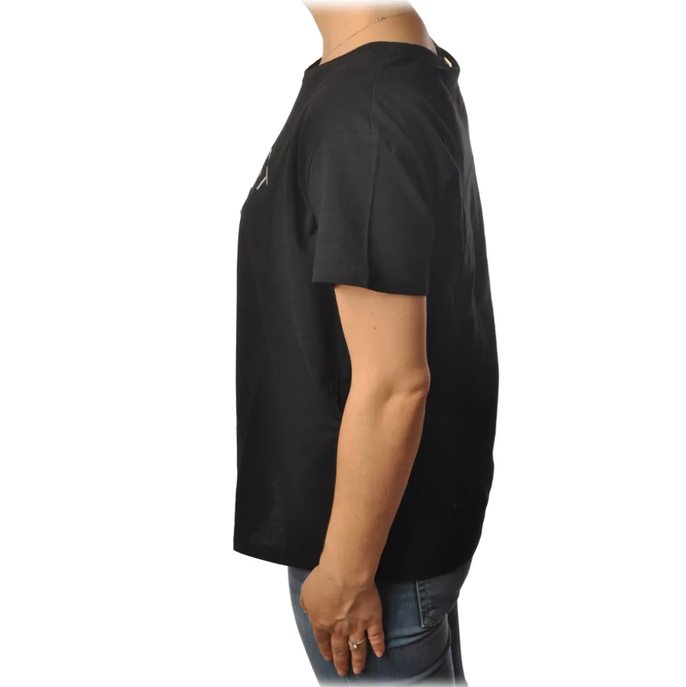 Twinset – T-Shirt with Pineapple Embroidery and Twinset Writing – Black – T-shirt – Made in Italy – Luxury Exclusive Collection