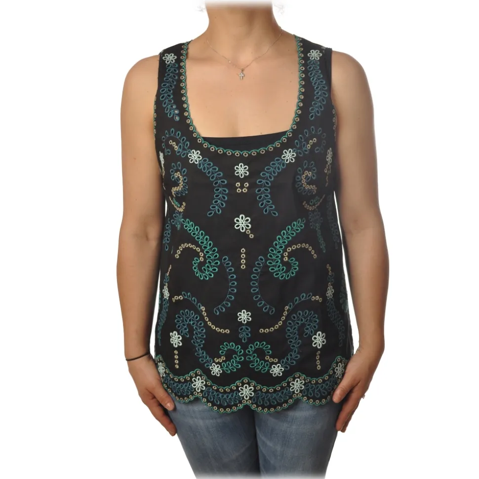 Twinset – Tank Top with Colored Openwork Embroidery – Black – Top – Made in Italy – Luxury Exclusive Collection