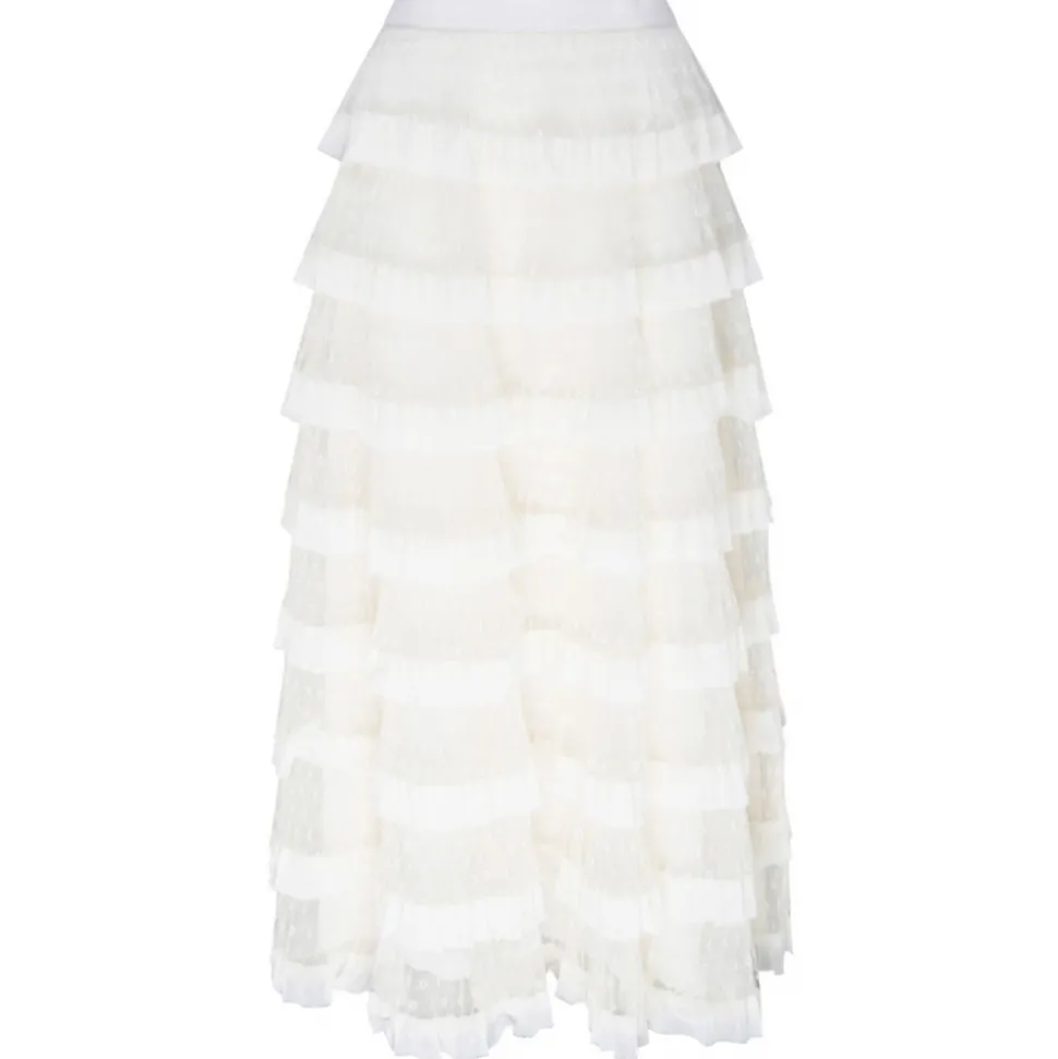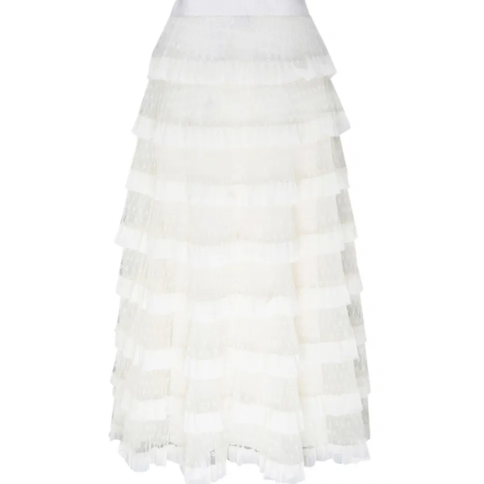 Red Valentino White Tulle Long Skirt. White tulle long skirt, concealed zip fastening on the back, ruffled finish.
