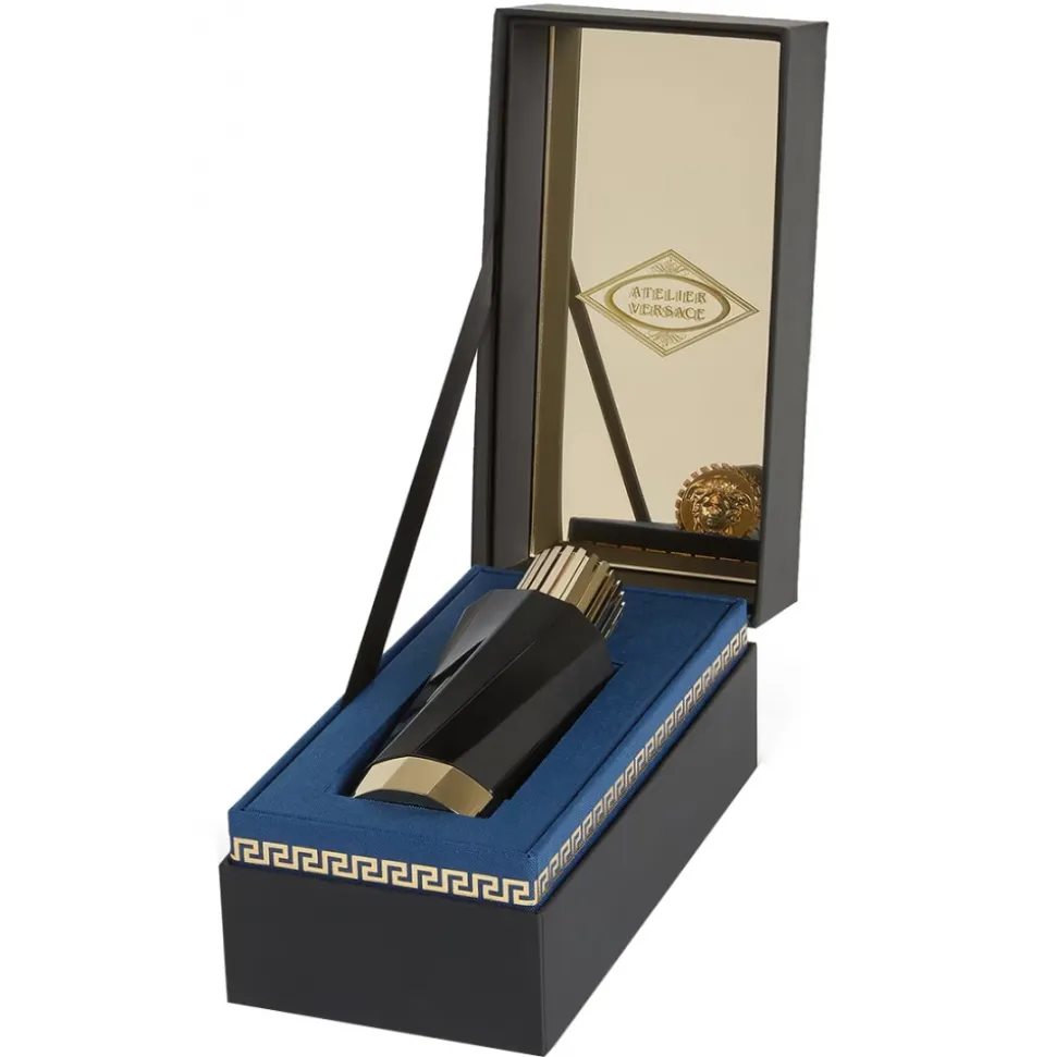Evoking the Mediterranean summer, Figue Blanche encompasses fresh fig notes mixed with the pulp and essential oils of the Italian mandarin. The warm olfactory tones are complemented with zesty hints of bergamot. The fragrance is enriched with jasmine and rose petals and was created by perfumer Marypierre Julien, revealing the unexpected in the most familiar notes.The Atelier Versace fragrance line consists of twelve unique eau de parfum scents. The sculptural glass bottle is engraved with the name of the fragrance, and the packaging features the Atelier Versace logo in the interior mirror.