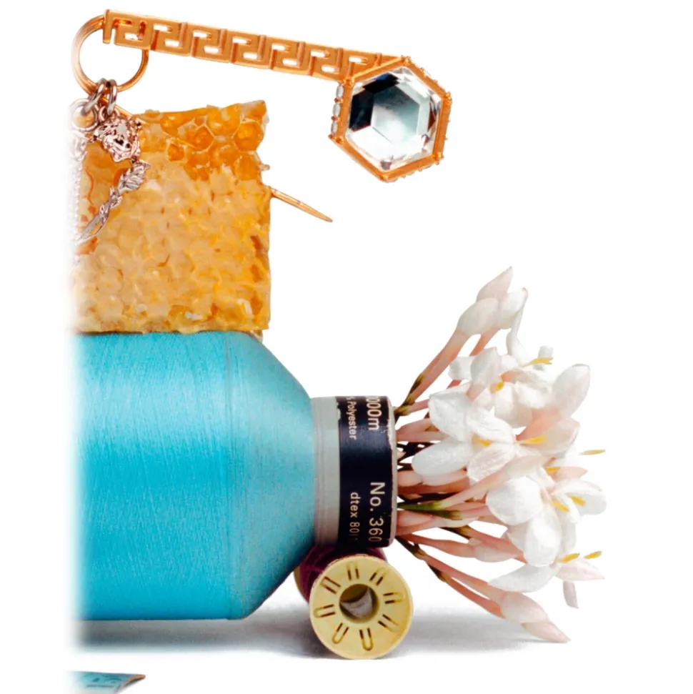 Created by perfumer Nathalie Lorson, Jasmin au Soleil highlights jasmine flowers from India picked at sunrise to preserve their freshness. Petals are complemented by beeswax from France, containing balsamic and honey notes with hints of hay and tobacco, adding a light, velvety dimension to the perfume. The sensual tones are paired with fresh lemon and cedarwood notes.The Atelier Versace fragrance line consists of twelve unique eau de parfum scents. The sculptural glass bottle is engraved with the name of the fragrance, and the packaging features the Atelier Versace logo in the interior mirror.