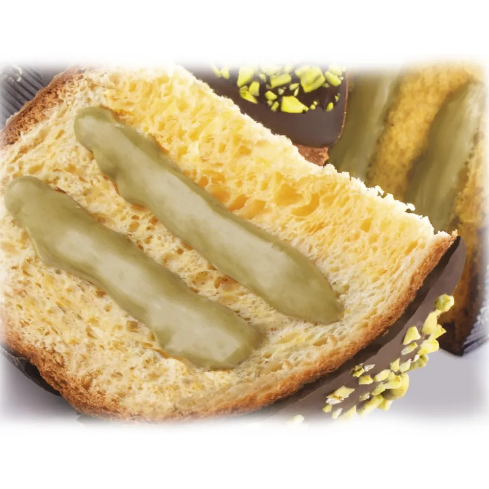 Panettone Coated with Dark Chocolate and Sicilian Pistachio Stuffed with Pistachio Cream