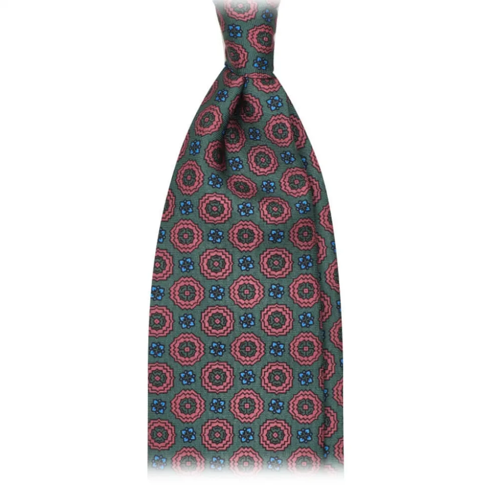 Viola Milano – Artisan Floral Selftipped Italian Silk Tie – Green – Made in Italy – Luxury Exclusive Collection