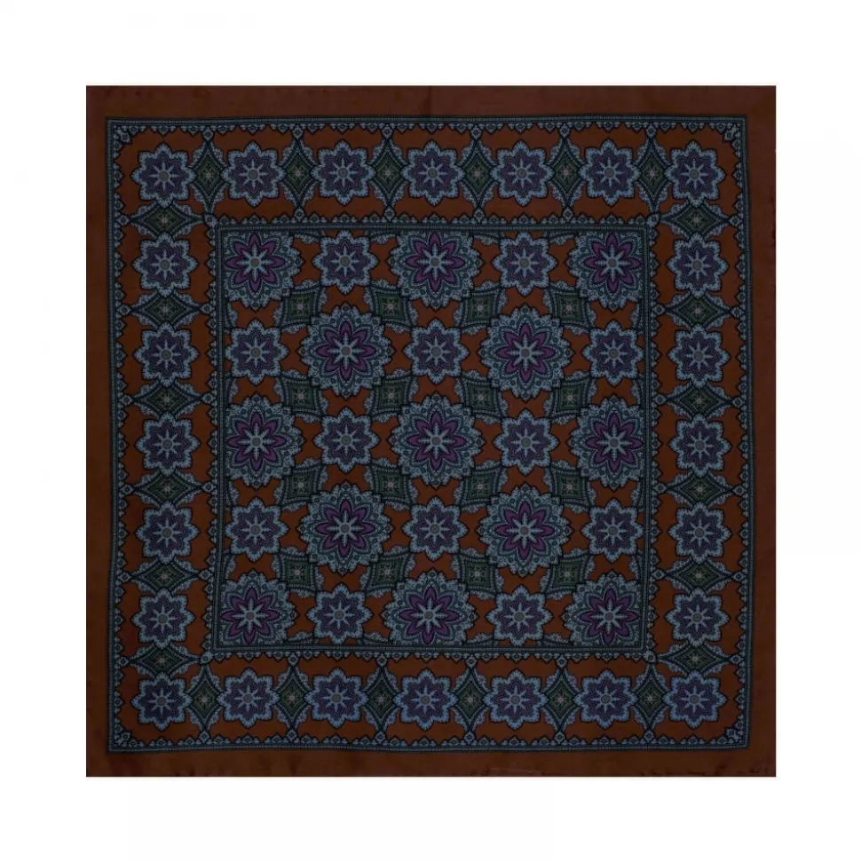 Viola Milano – Artisan Floral Silk Pocket Square – Brown Mix – Handmade in Italy – Luxury Exclusive Collection